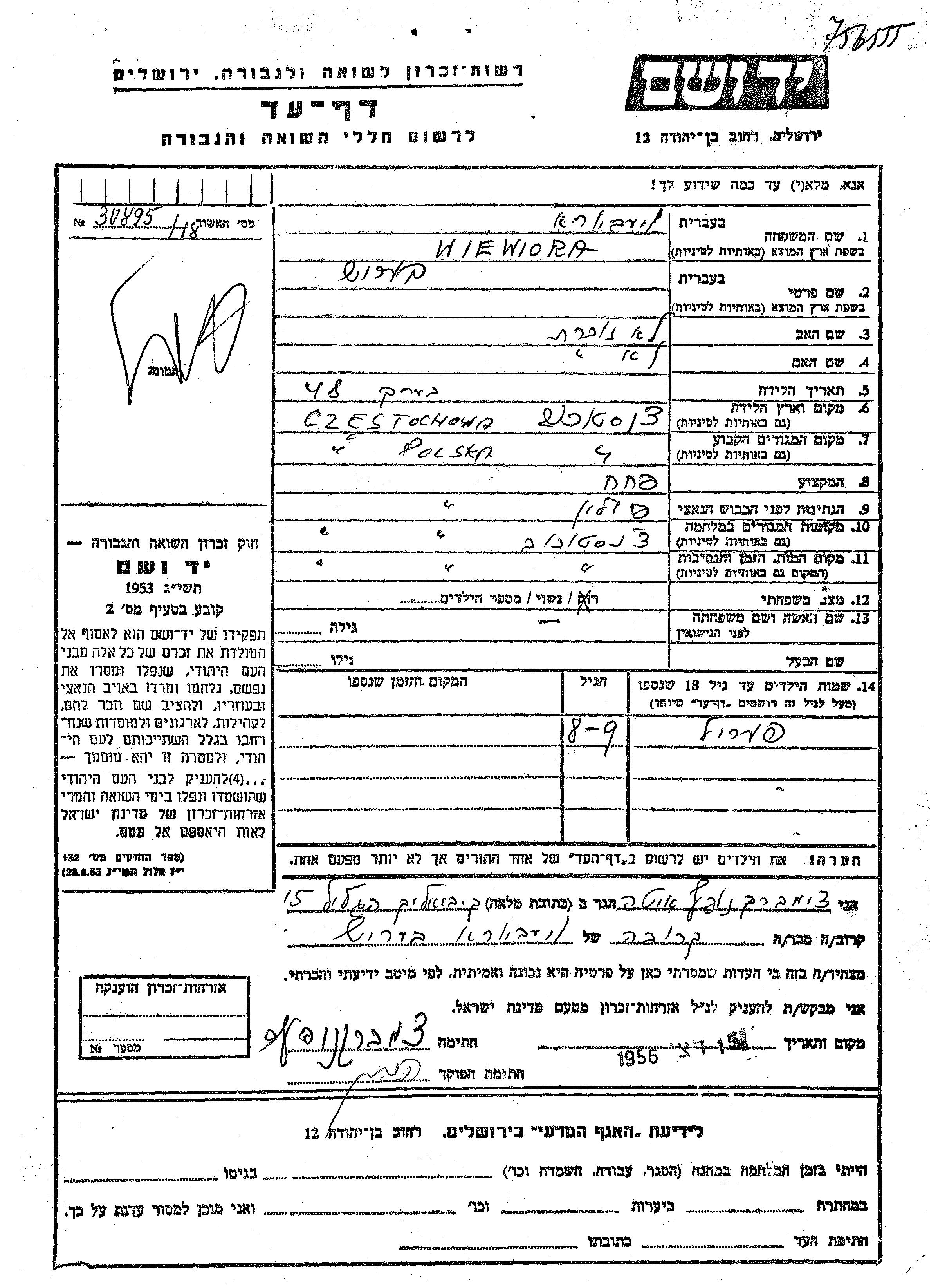 Peril Wiewiora wurde Sie war die Tochter von Berish. Sie war Kind. Vor dem Zweiten Weltkrieg lebte sie in Czestochowa, Polen. Während des Krieges war sie in Czestochowa, Polen.