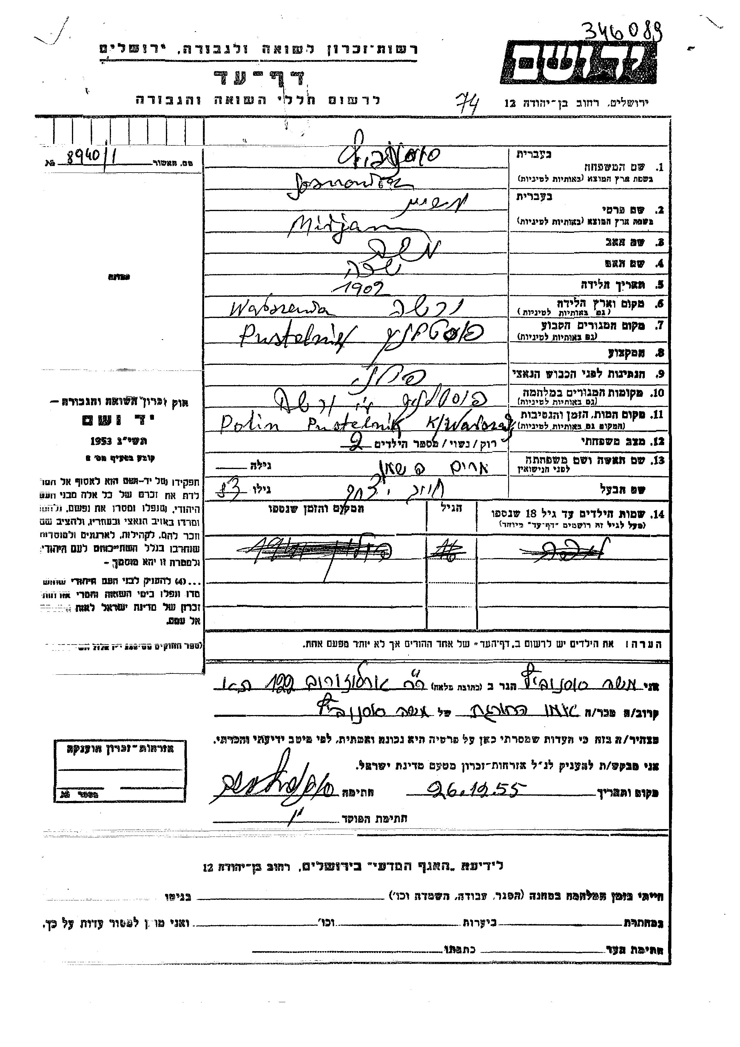 Lipa Sosnowicz wurde Er/sie war der/ die Sohn/Tochter von Khaim Yitzkhak und Miriam, geb. Fishman. Er/Sie war Kind. Vor dem Zweiten Weltkrieg er/sie in Pustelnik, Polen. Während des Krieges war er/sie in Pustelnik, Polen.