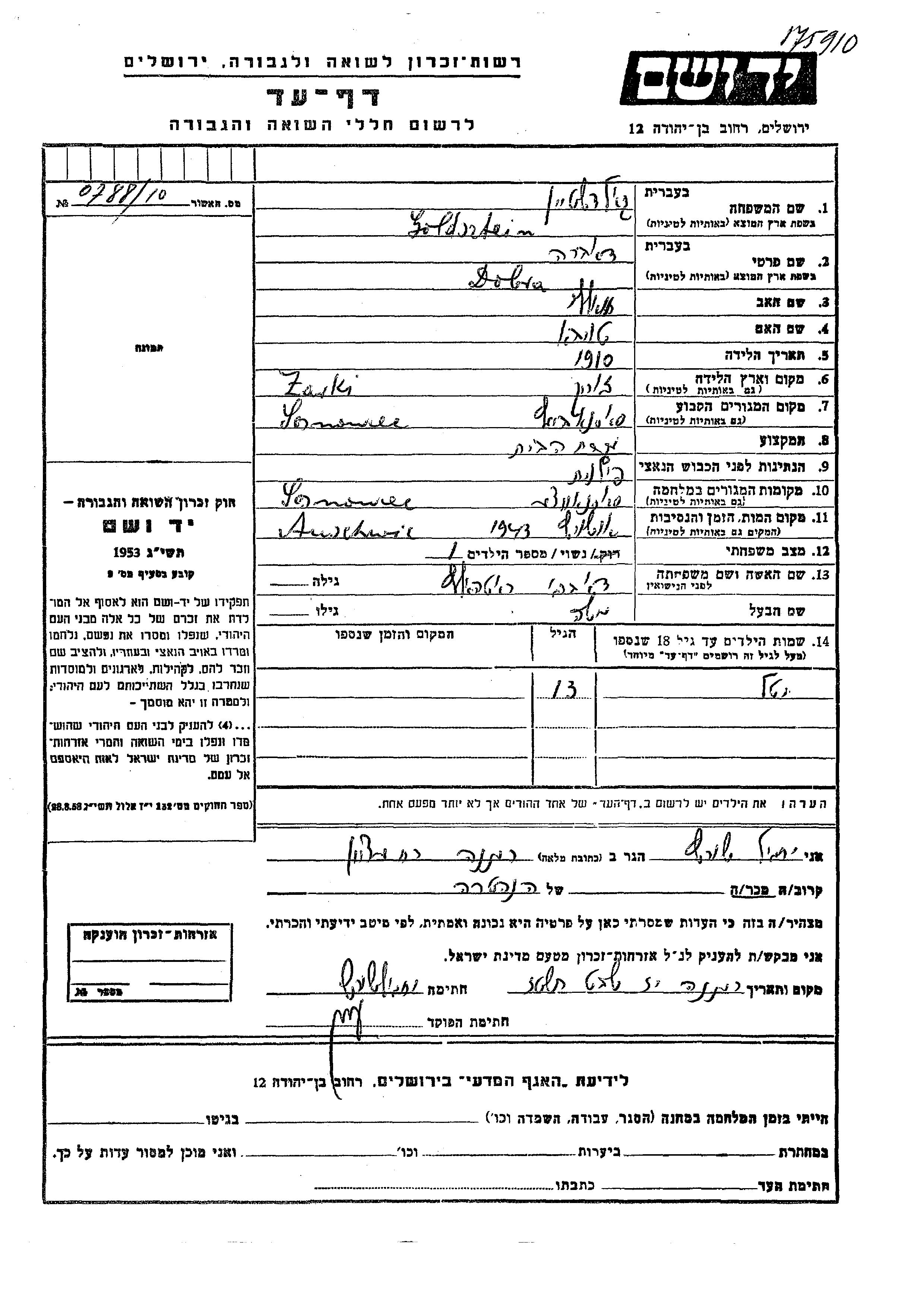 Goldsztein Ietel Sosnowiec, Polen Gedenkblatt