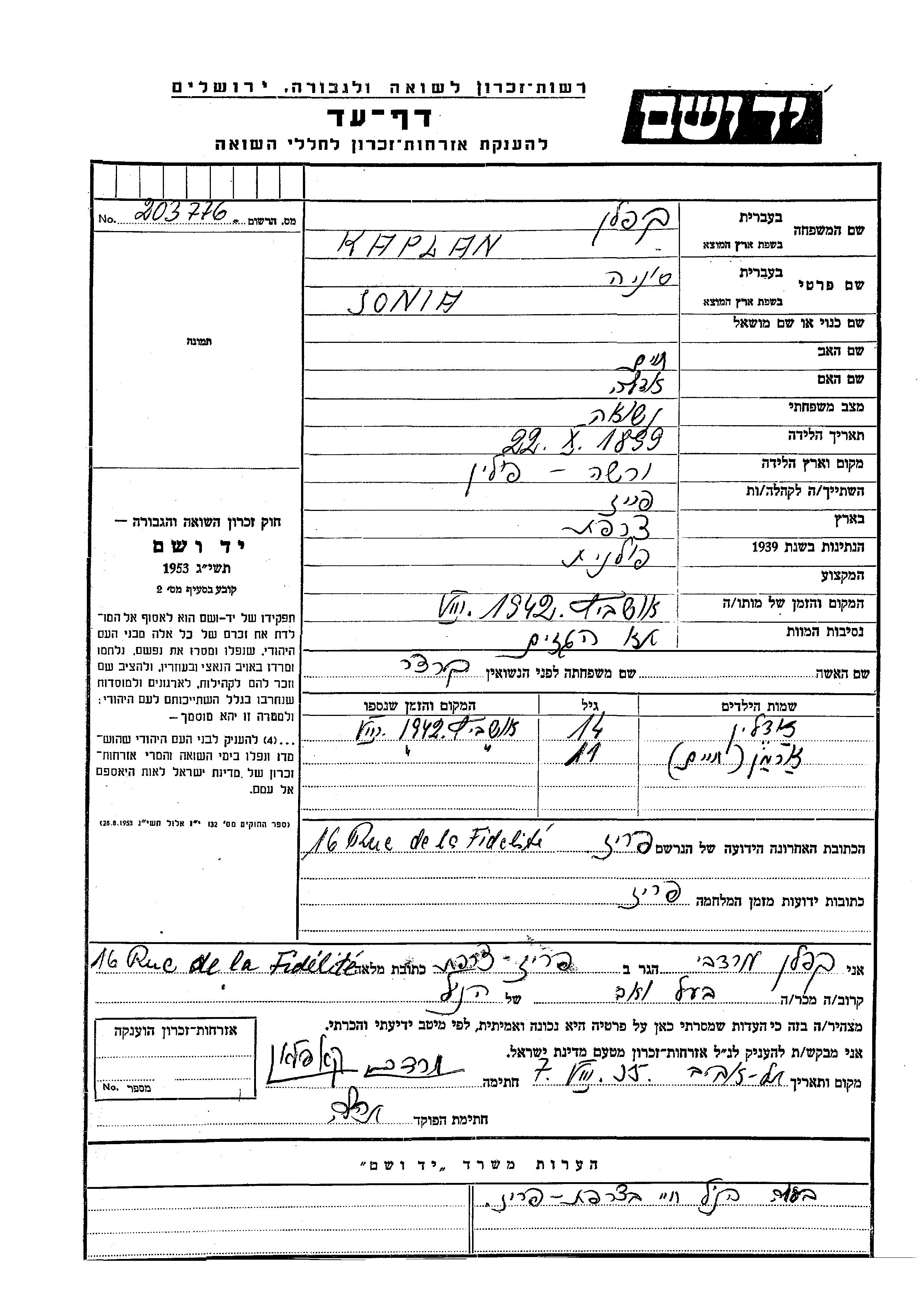 Adela Kaplan wurde Sie war die Tochter von Sonia, geb. Kertzer. Sie war Kind. Vor dem Zweiten Weltkrieg lebte sie in Paris, Frankreich. Während des Krieges war sie in Paris, Frankreich.