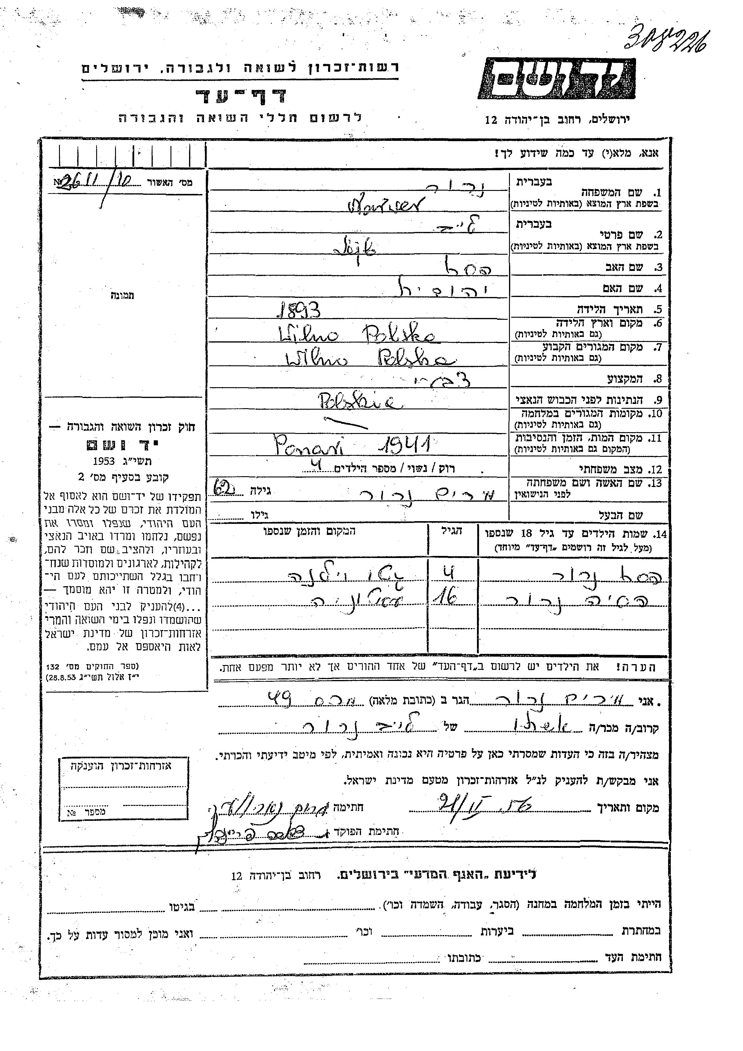 Pesia Narwer wurde Er/sie war der/ die Sohn/Tochter von Lejb und Miriam. Er/Sie war Kind. Vor dem Zweiten Weltkrieg er/sie in Wilna, Polen.
