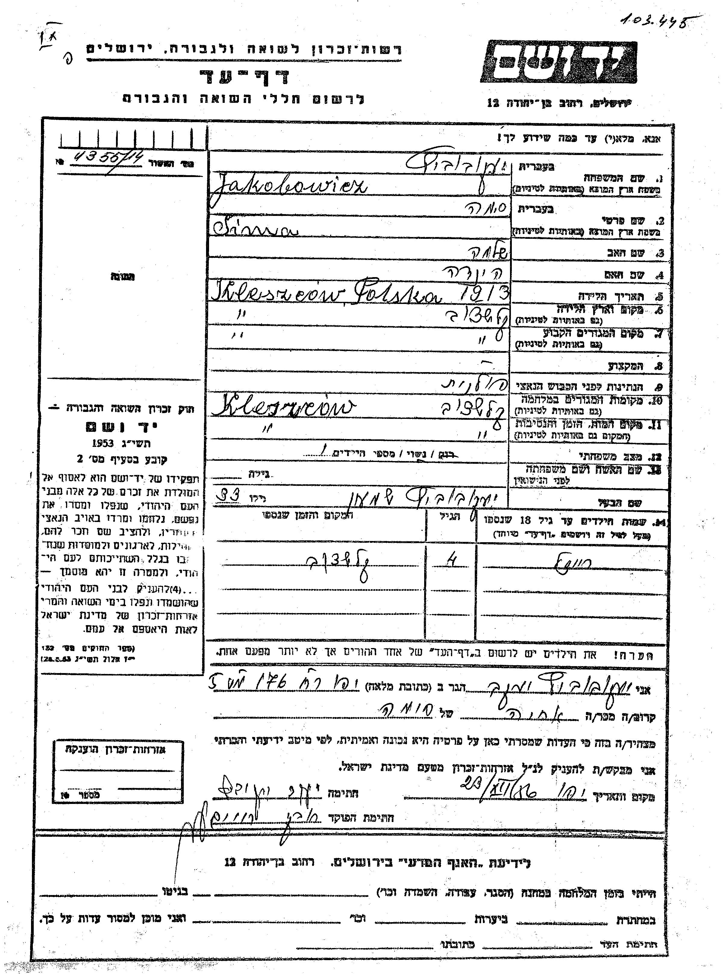 Jakobowicz Reizl Kleszczow, Polen Gedenkblatt