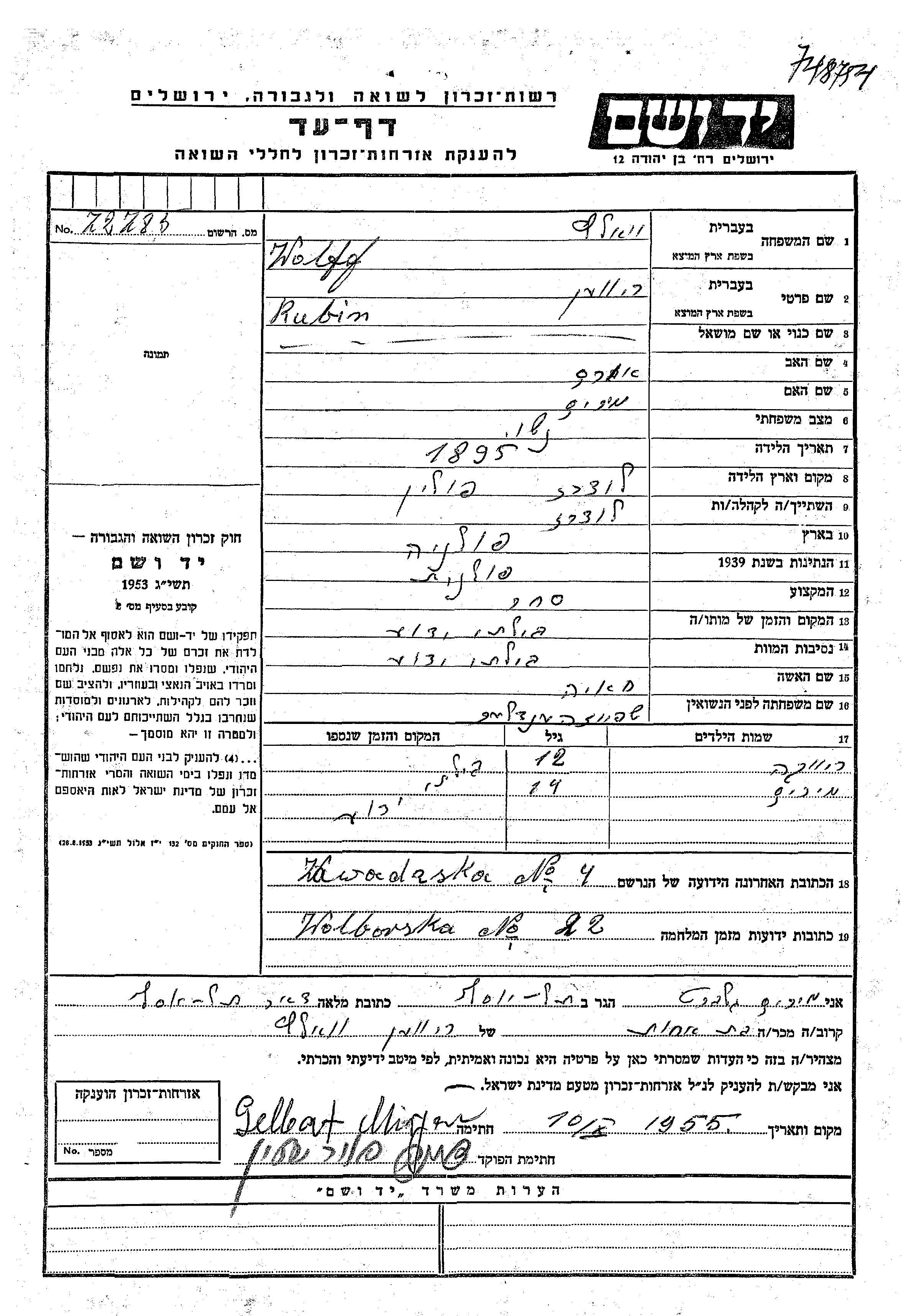 Miriam Wolff wurde Sie war die Tochter von Rubin und Khaia, geb. Shpaizhendler. Sie war Kind. Vor dem Zweiten Weltkrieg lebte sie in Polen. Während des Krieges war sie in Lodz, Polen.
