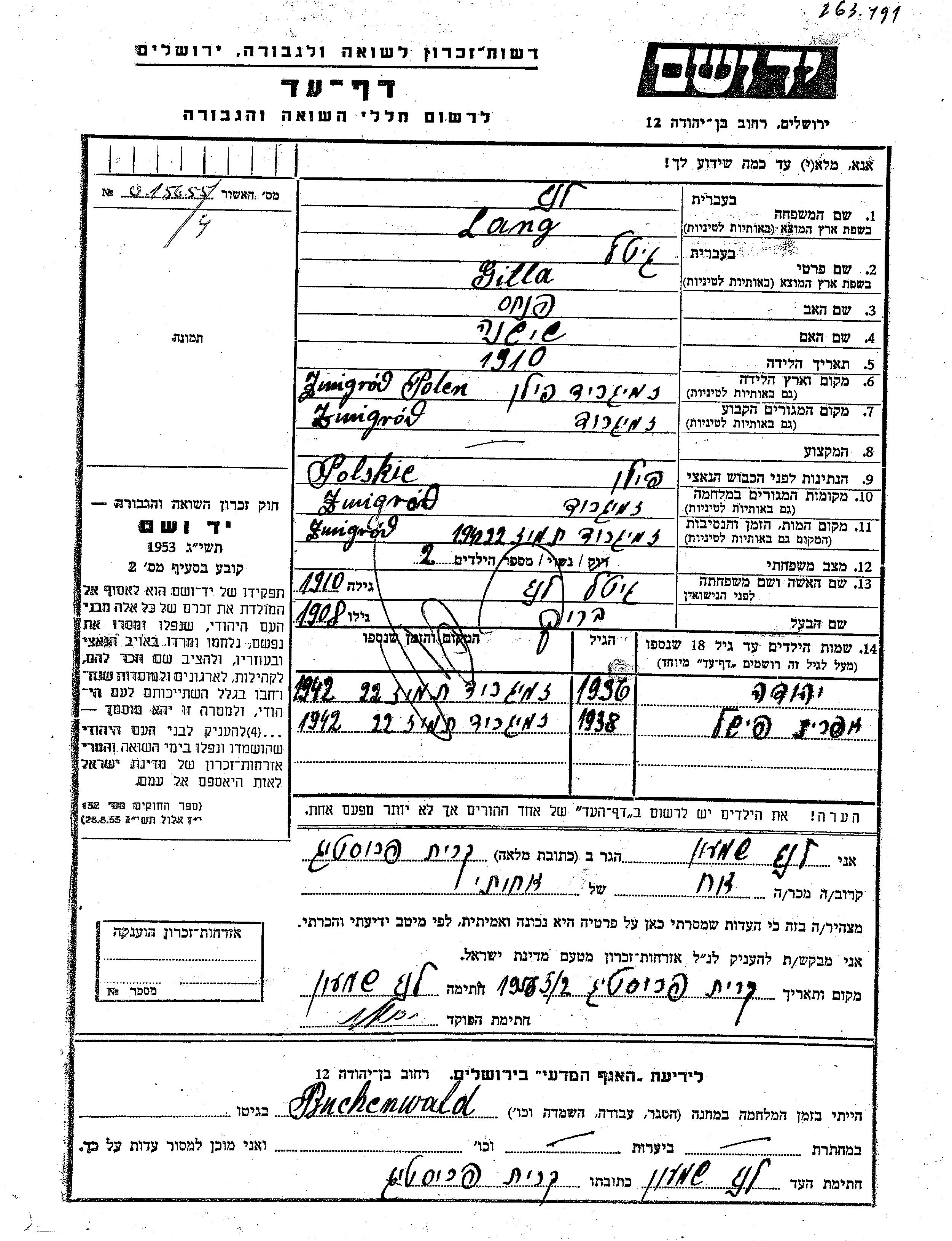 Aufenthaltsort während des Krieges/Schoah