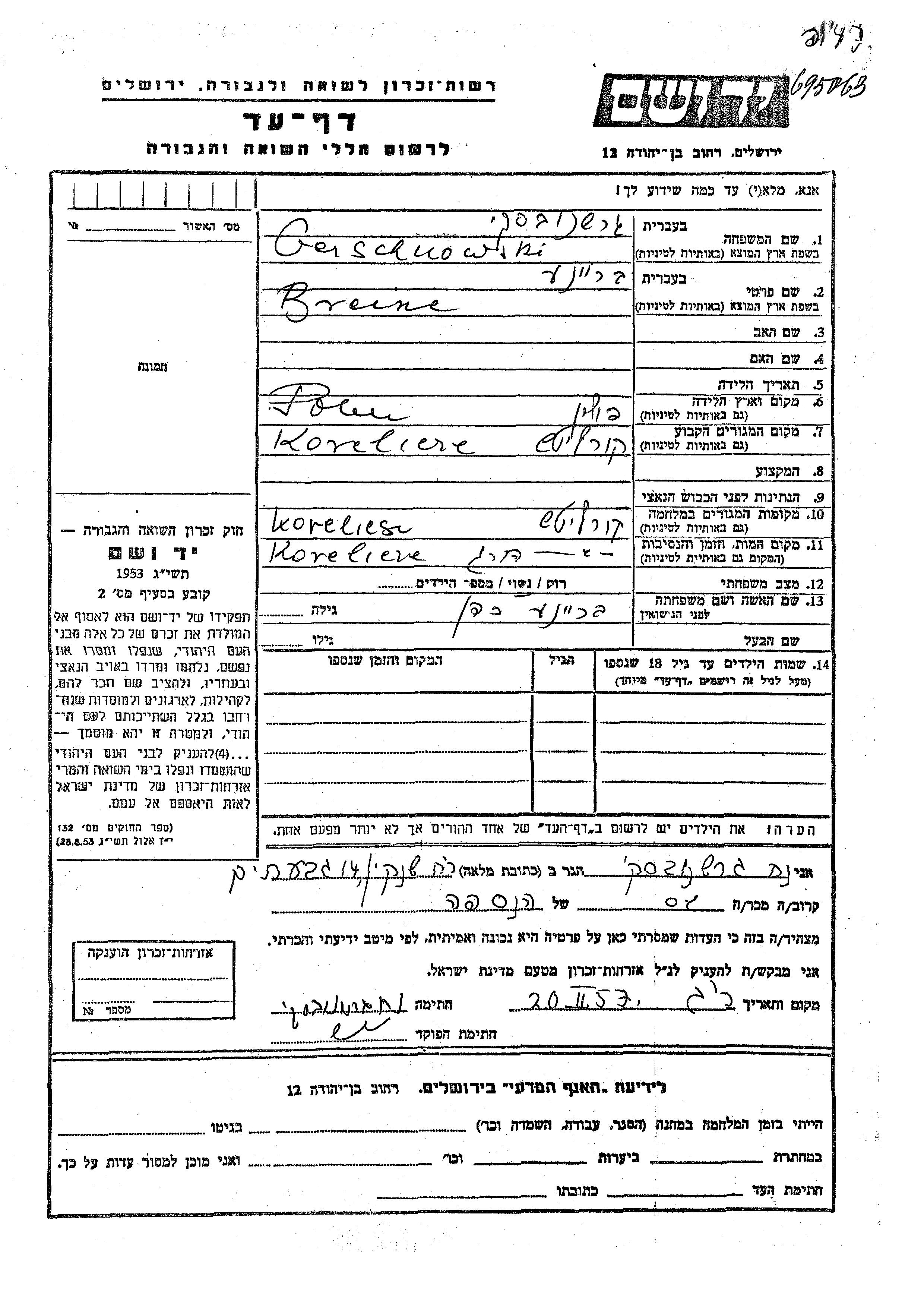Breine wurde in der Schoah ermordet. Todesort: Koreliche, Polen.