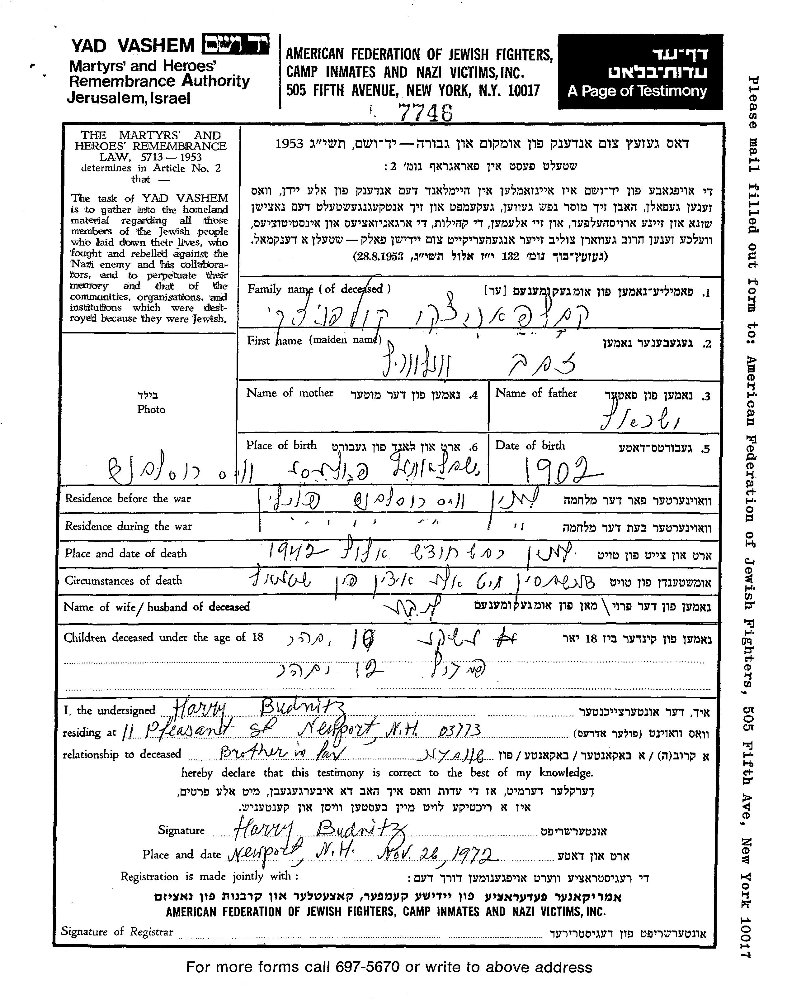 Suche nach einem Todesjahr im Zeitraum der Holocaust: 1933 bis 1945. Bitte wählen Sie 'Exakt' im Auswahlmenü, um nur nach einem einzelnen Jahr zu suchen, alternativ können Sie die flexibleren Optionen '+/- 2 Jahre' oder '+/- 5 Jahre' wählen.