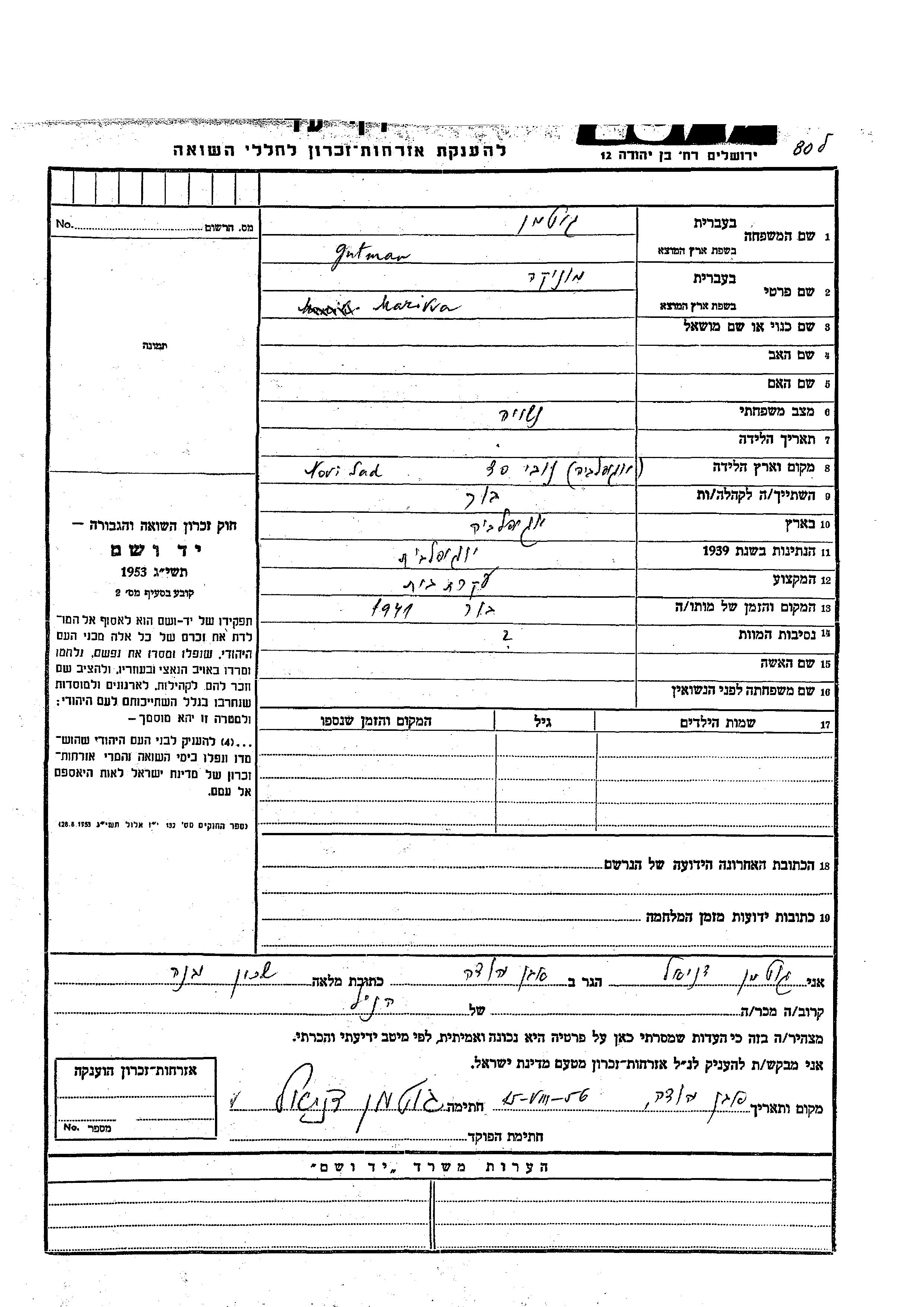 Marika Monika Gutman wurde in Novi Sad, Jugoslawien geboren. Sie war Hausfrau und Verheiratet. Vor dem Zweiten Weltkrieg lebte sie in Bor, Jugoslawien.