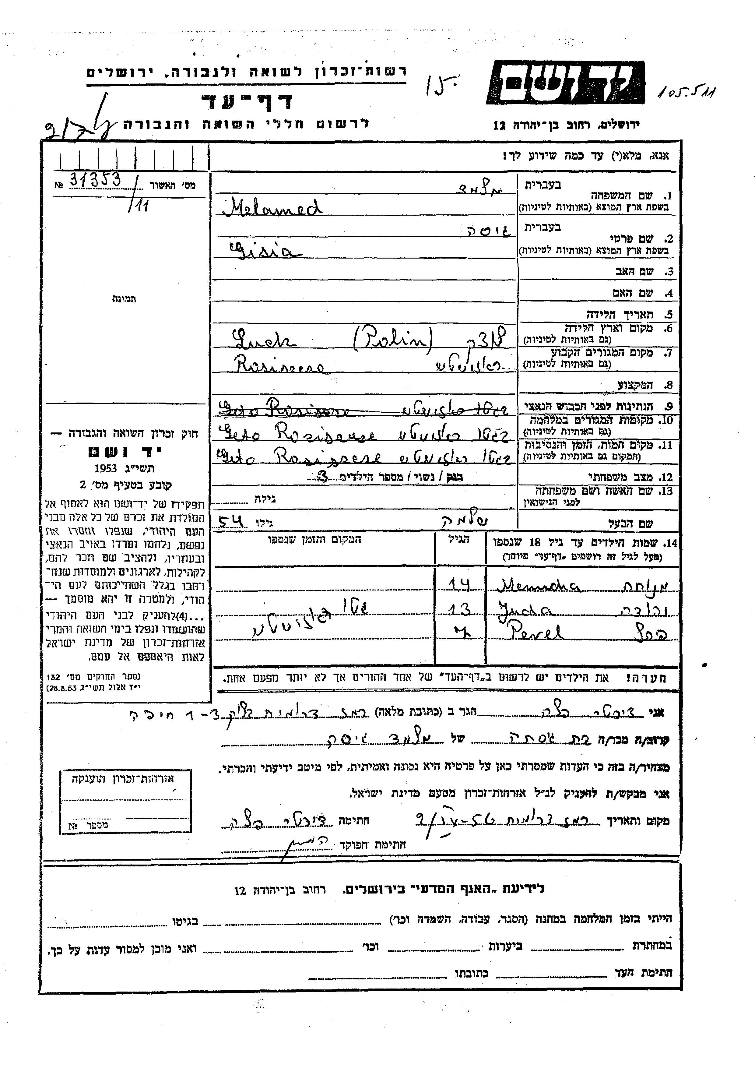 Menucha Melamed wurde Sie war die Tochter von Shlomo und Gisia. Sie war Kind. Vor dem Zweiten Weltkrieg lebte sie in Rozisce, Polen. Während des Krieges war sie in Rozisce, Polen.