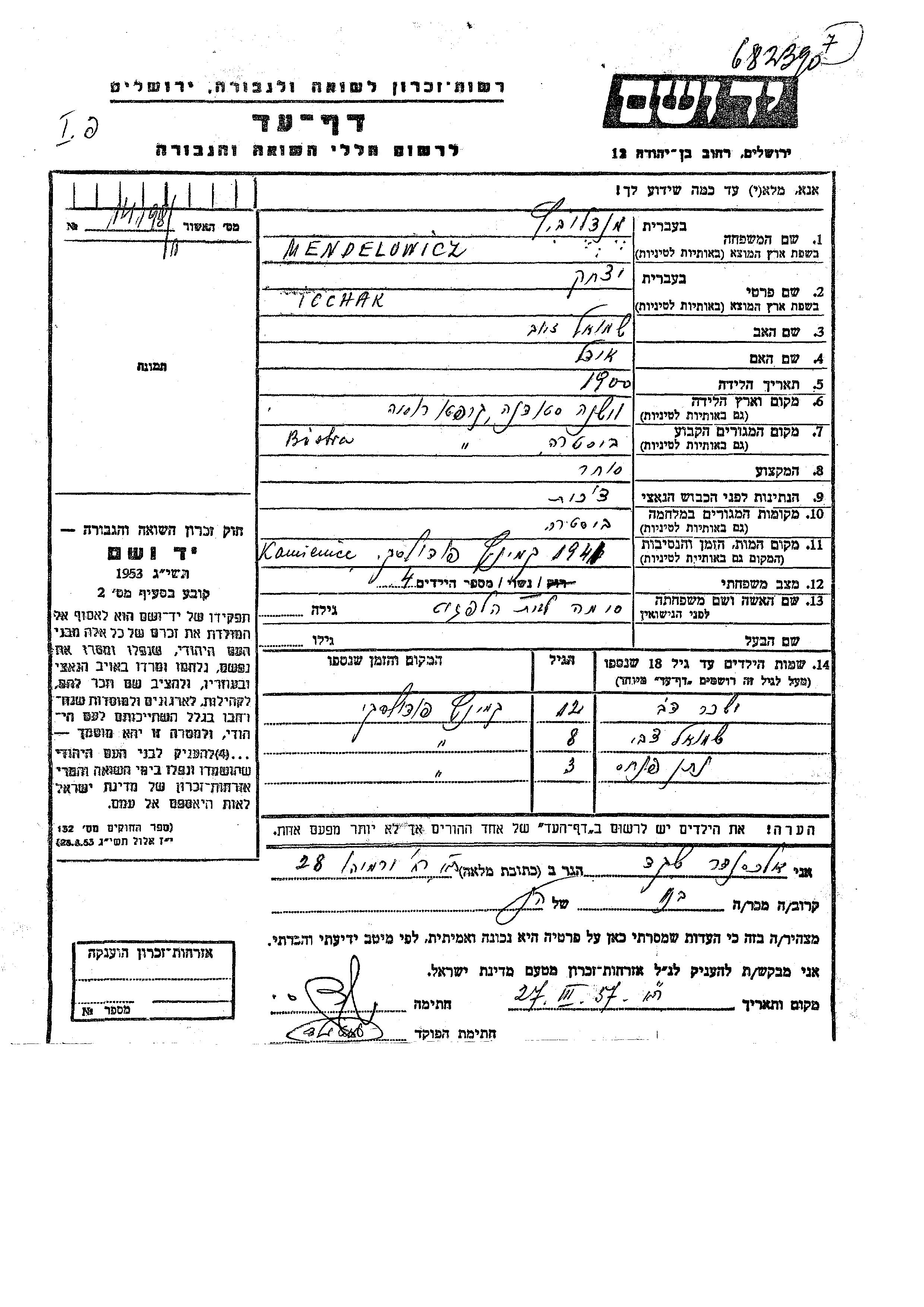 Shmuel Tzvi wurde in der Schoah ermordet. Todesort: Kamenets Podolskiy, Ukraine (UdSSR).