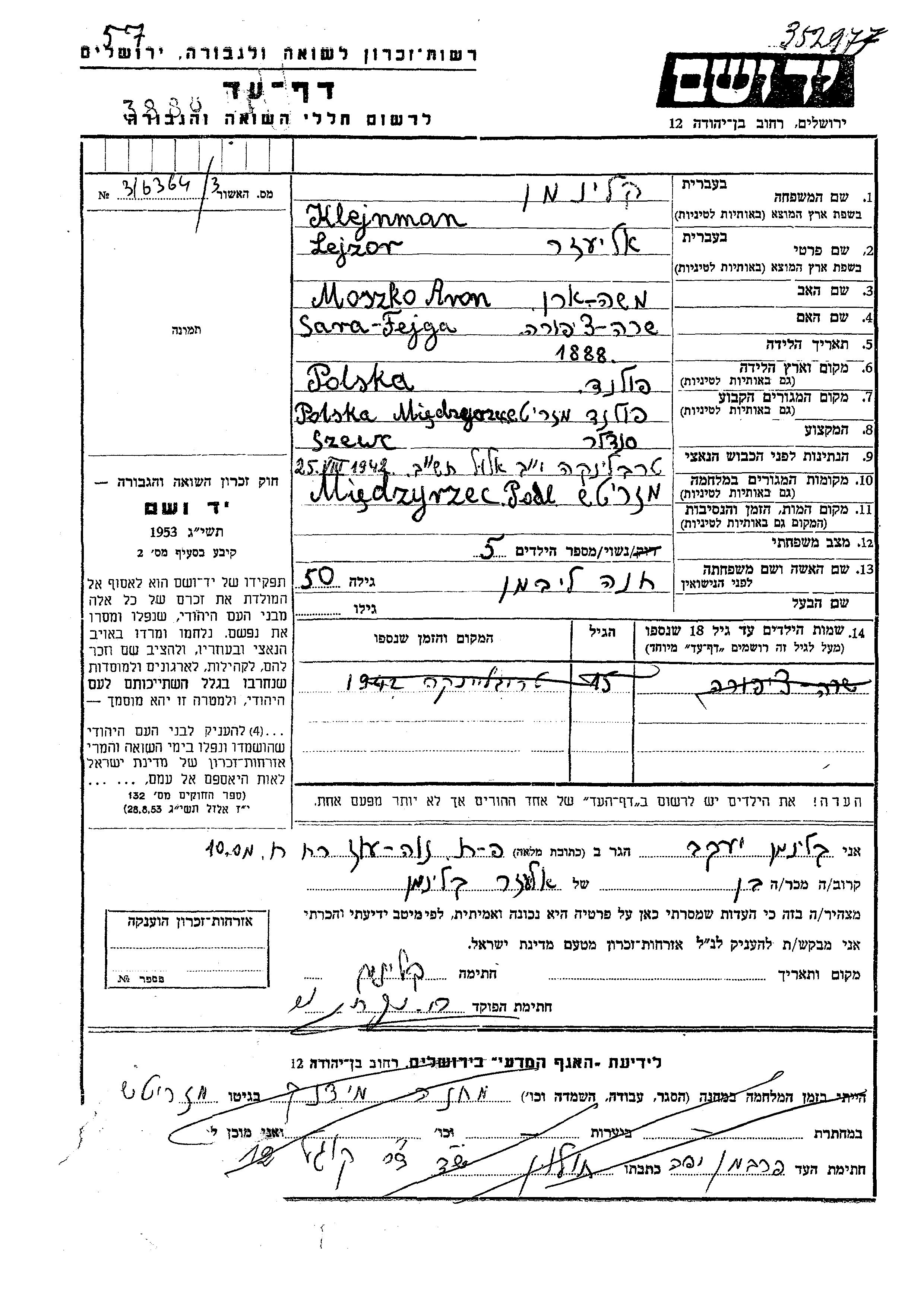 Klejnman Sara Tzipora Miedzyrzecz, Polen Gedenkblatt