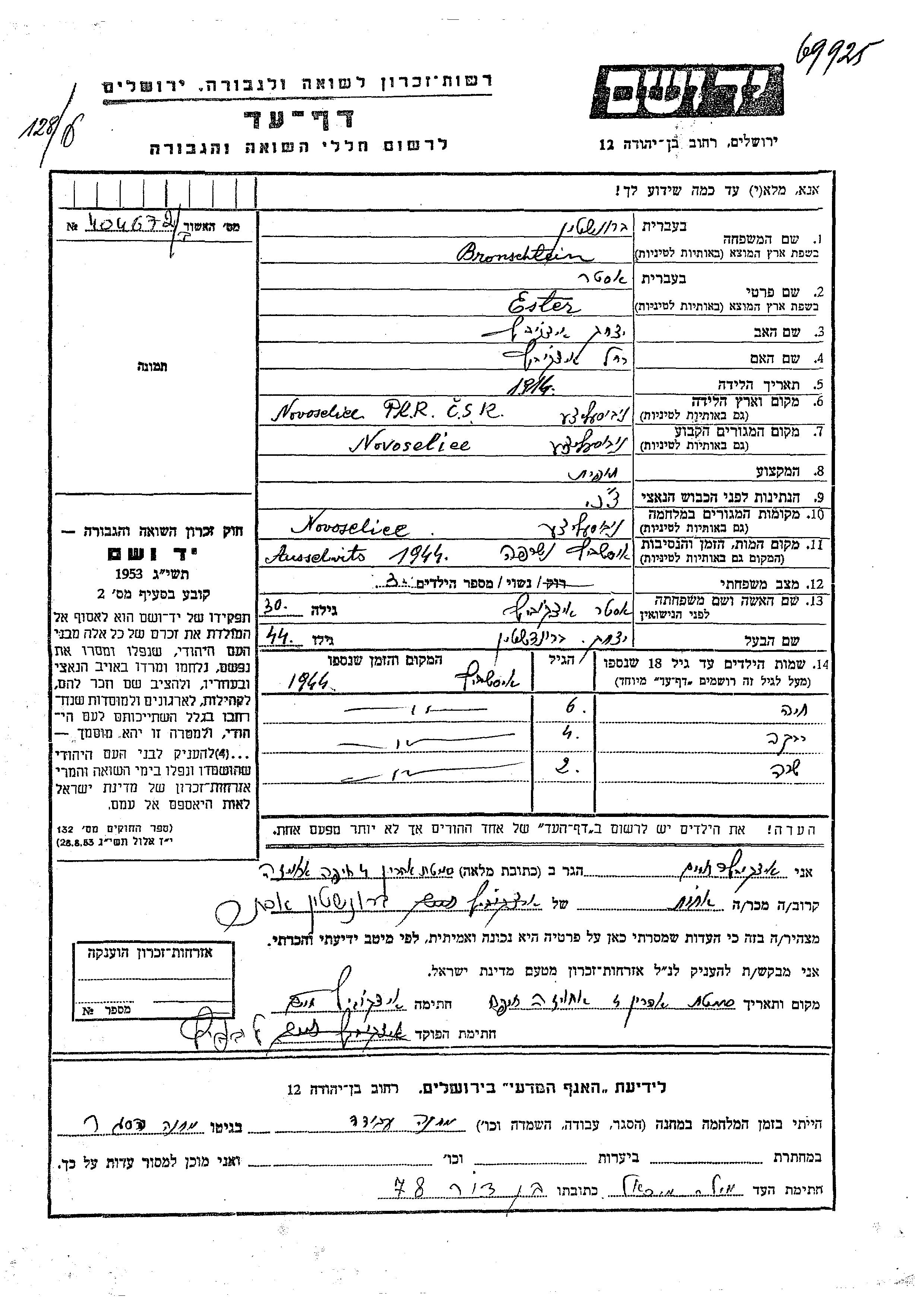 Bronschtein Sara Novoselice, Tschechoslowakei Gedenkblatt