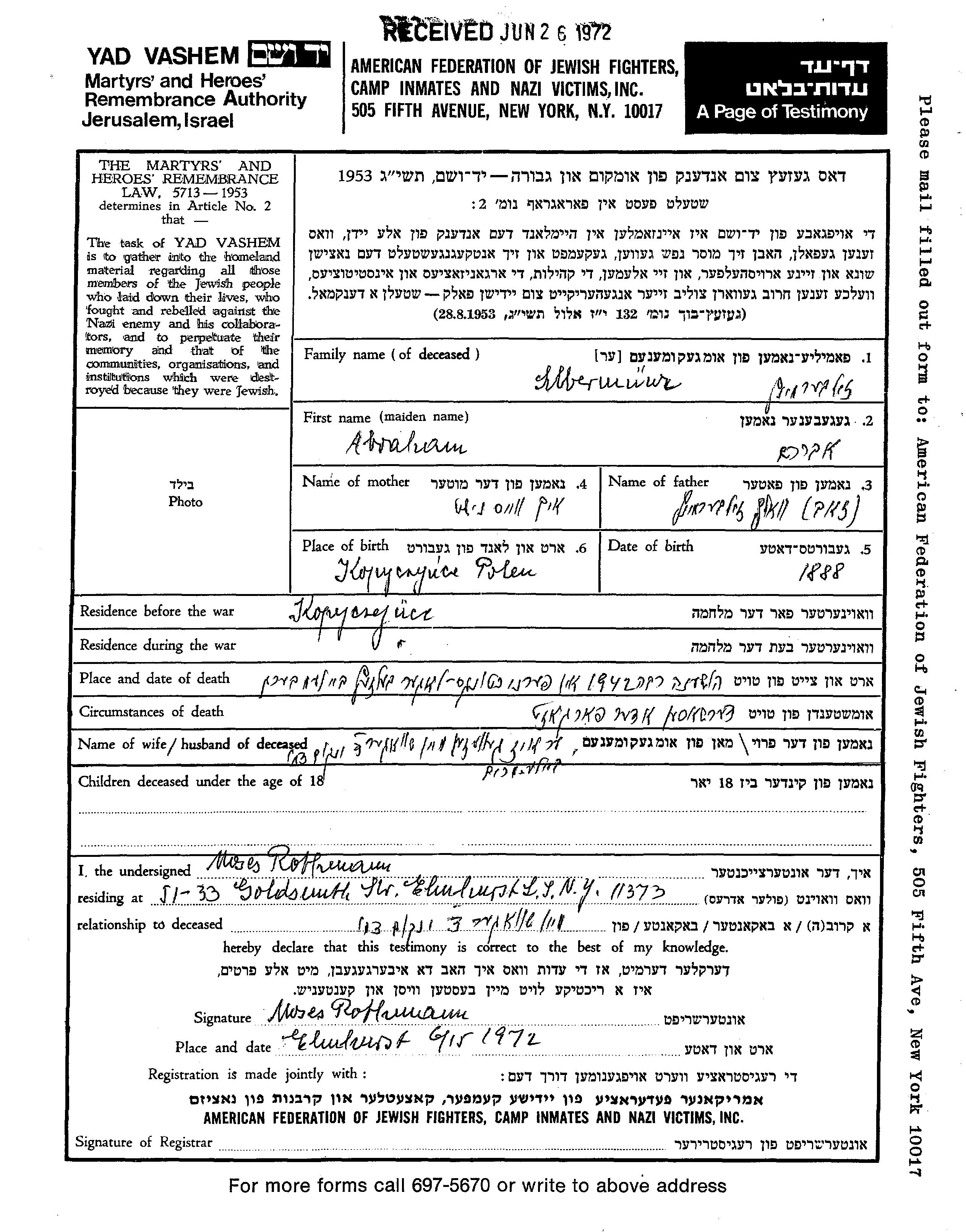 Yaakov Tzvi wurde in der Schoah ermordet.