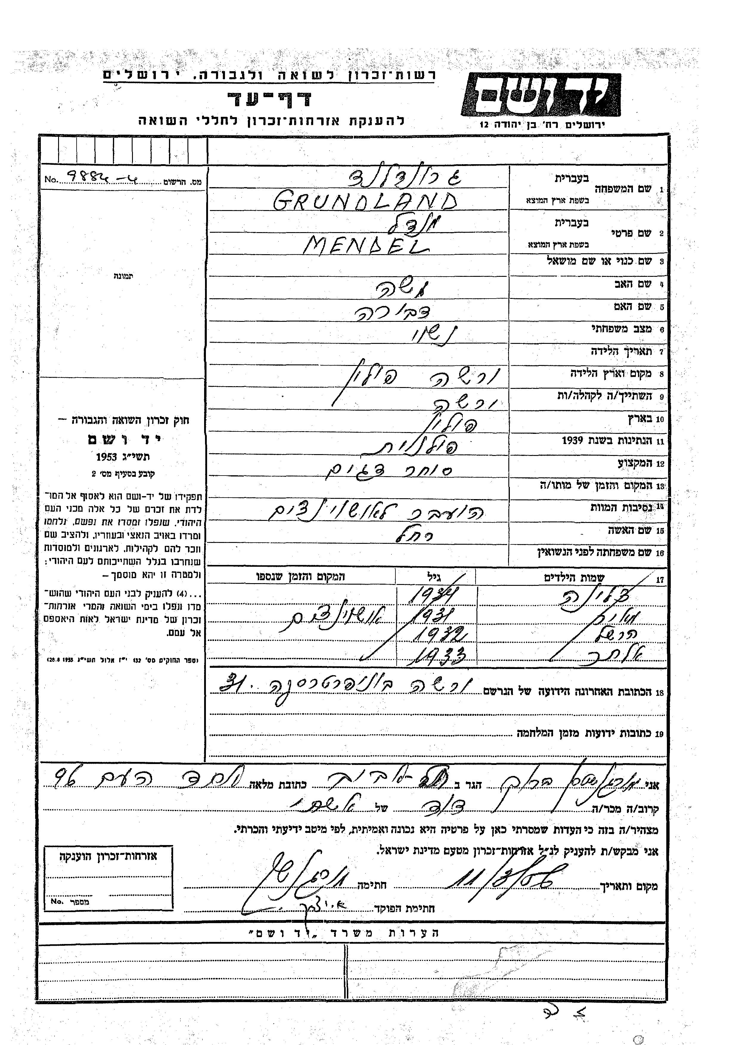 Mendel Grundland wurde in Warszawa, Polen geboren. Er war der Sohn von Moshe und Dvora. Er war Fischhändler und mit Rakhel Verheiratet. Vor dem Zweiten Weltkrieg lebte er in Warszawa, Polen. Während des Krieges war er in Warszawa, Polen.