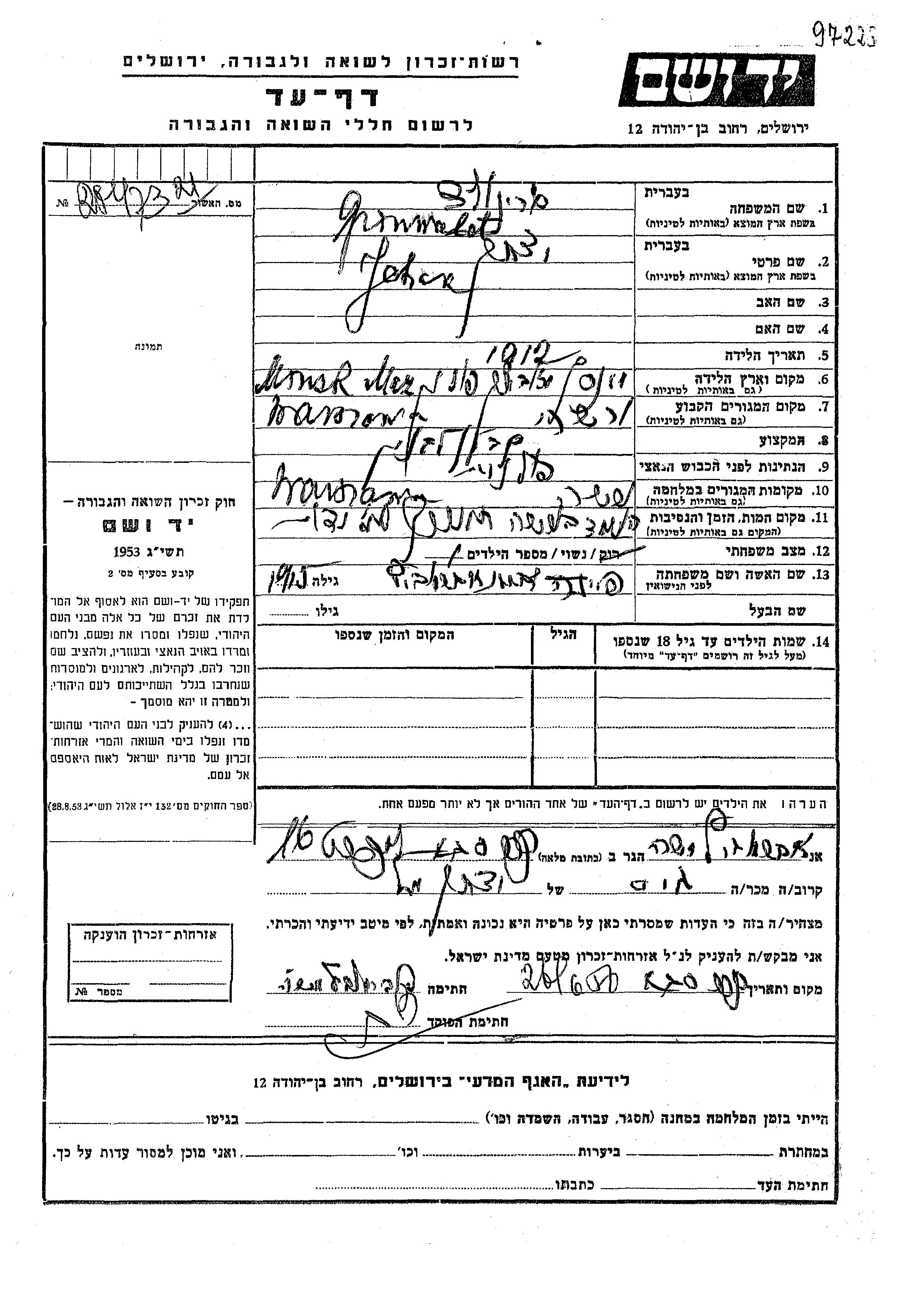 Yad Vashem - Gedenkblätter Sammlung