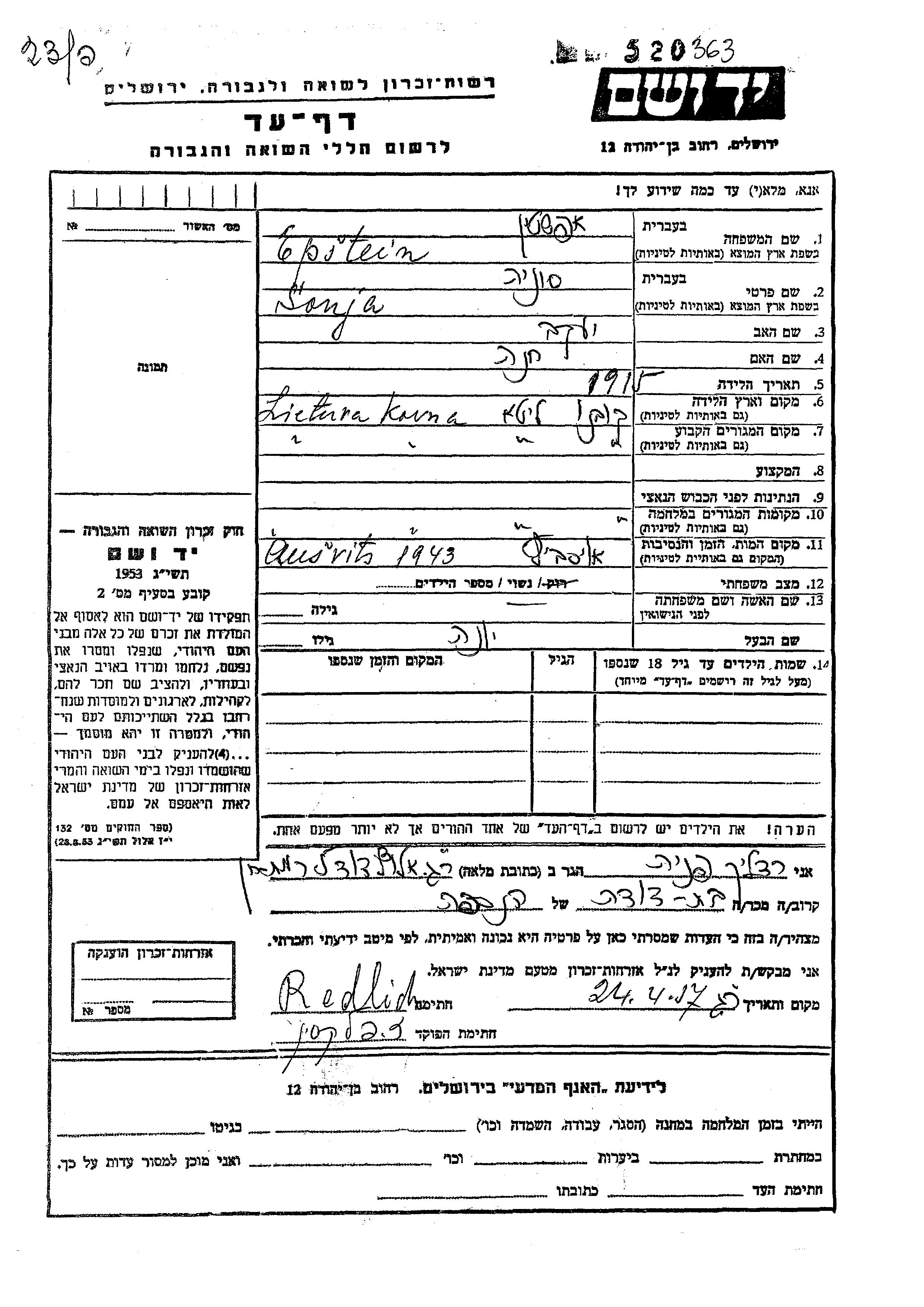 Sonja wurde in der Schoah ermordet. Todesort: Auschwitz, Polen im Jahr 1943.