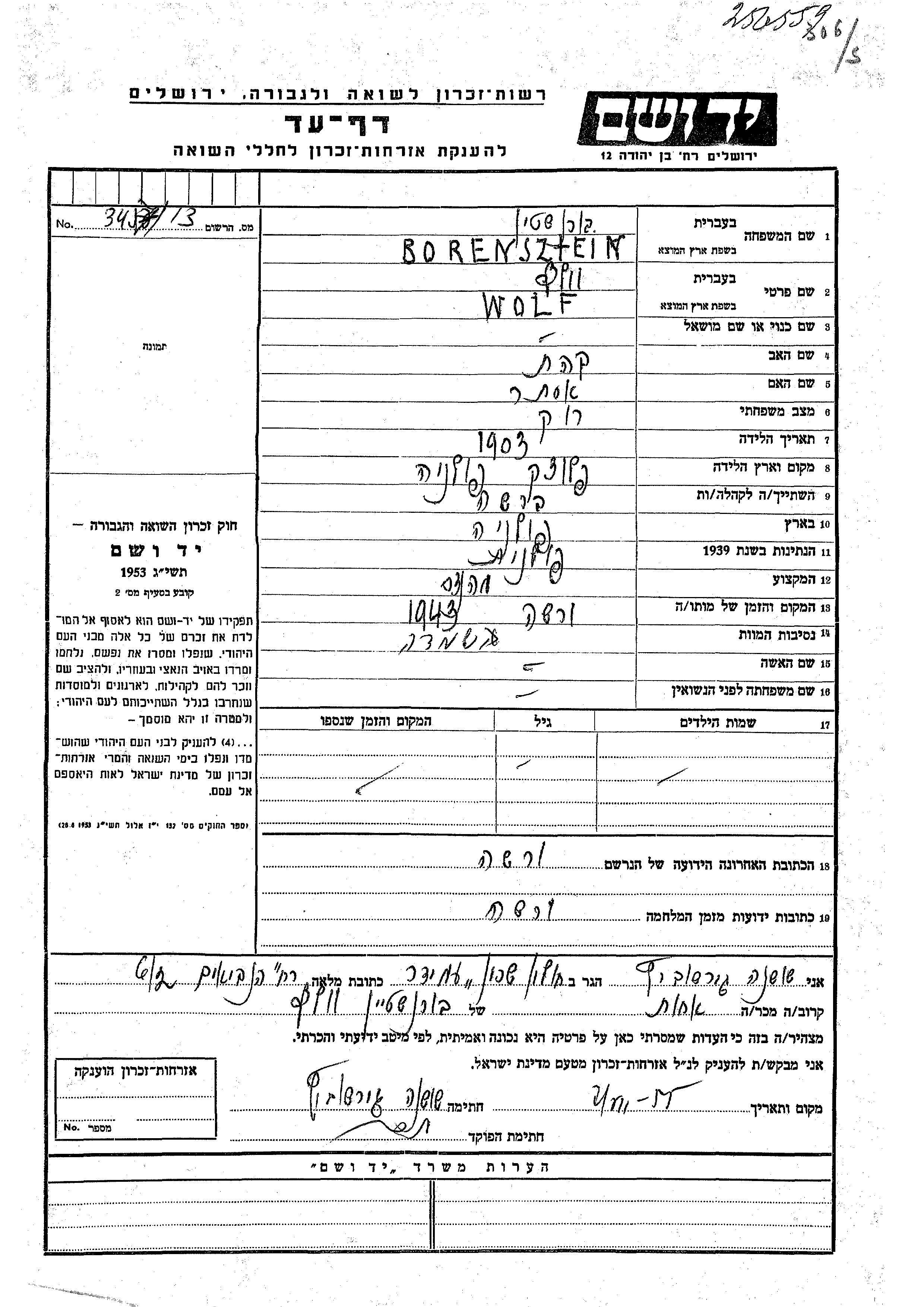 Borensztein Wolf 1903 Warszawa, Polen Gedenkblatt