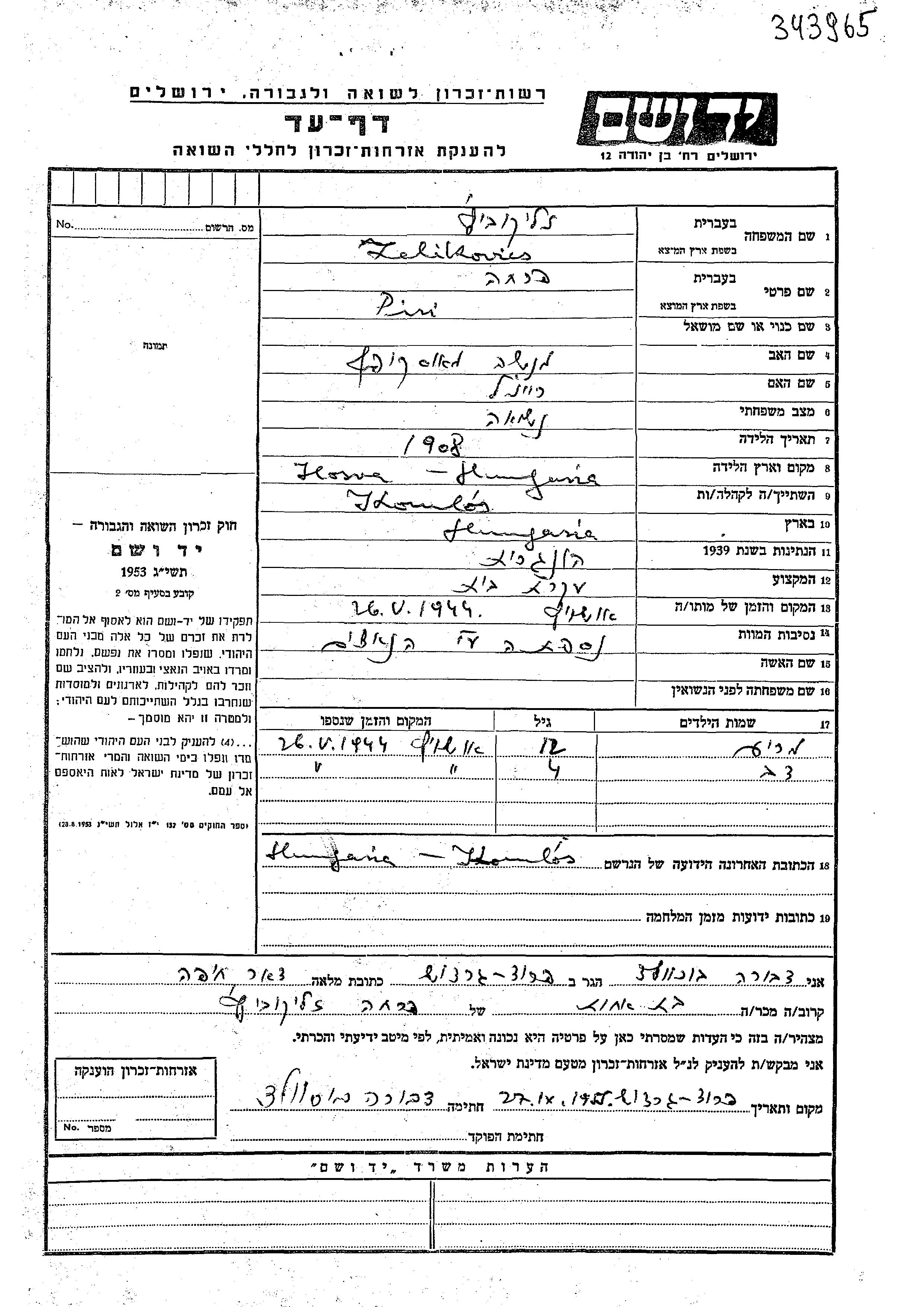 Dov Zelikovics wurde Er war der Sohn von Piri Brakha, geb. Mausskopf. Er war Kind.