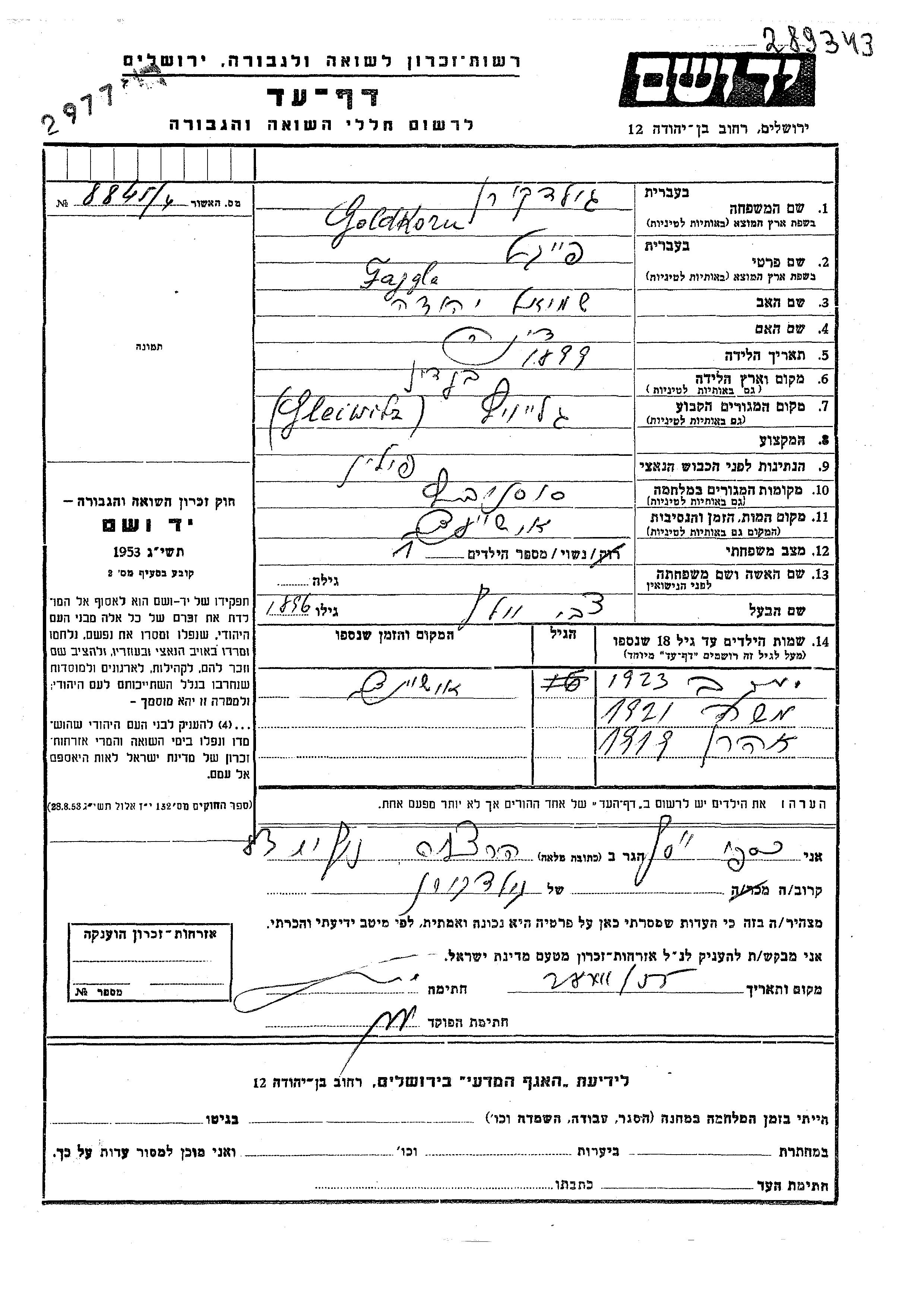 Fajgla Goldkorn wurde im Jahr 1899 in Będzin, Polen geboren. Sie war die Tochter von Shmuel Yehuda und Dina. Sie war mit Tzvi Volf Verheiratet. Vor dem Zweiten Weltkrieg lebte sie in Gleiwitz, Deutsches Reich.