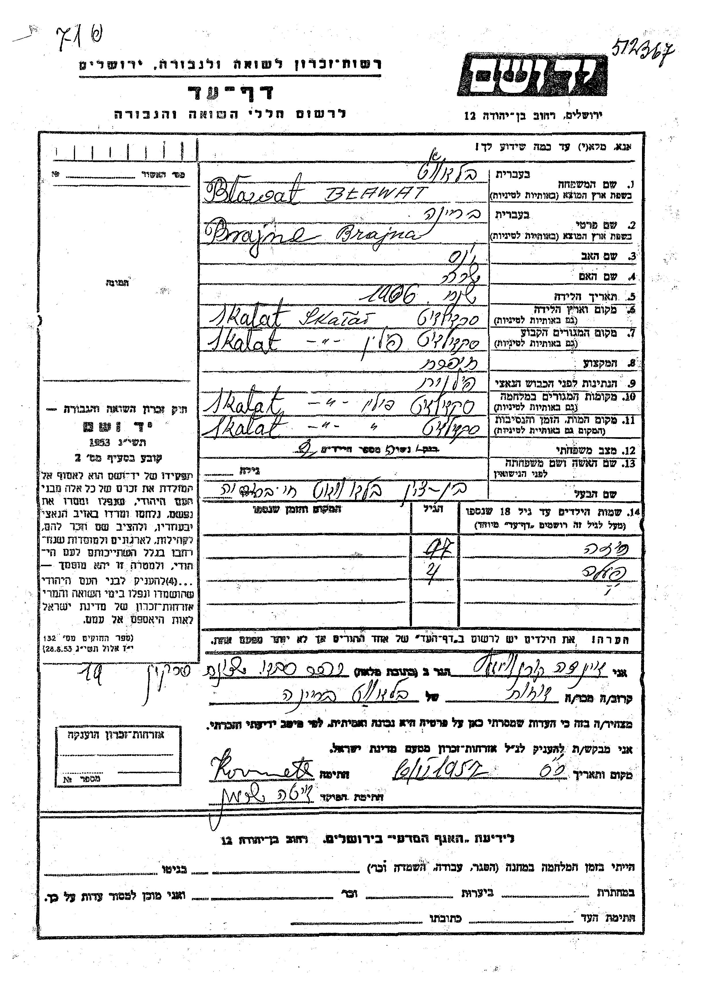 Fela Blawat wurde Sie war die Tochter von Bentzion und Brajna. Sie war Kind. Vor dem Zweiten Weltkrieg lebte sie in Skalat, Polen. Während des Krieges war sie in Skalat, Polen.