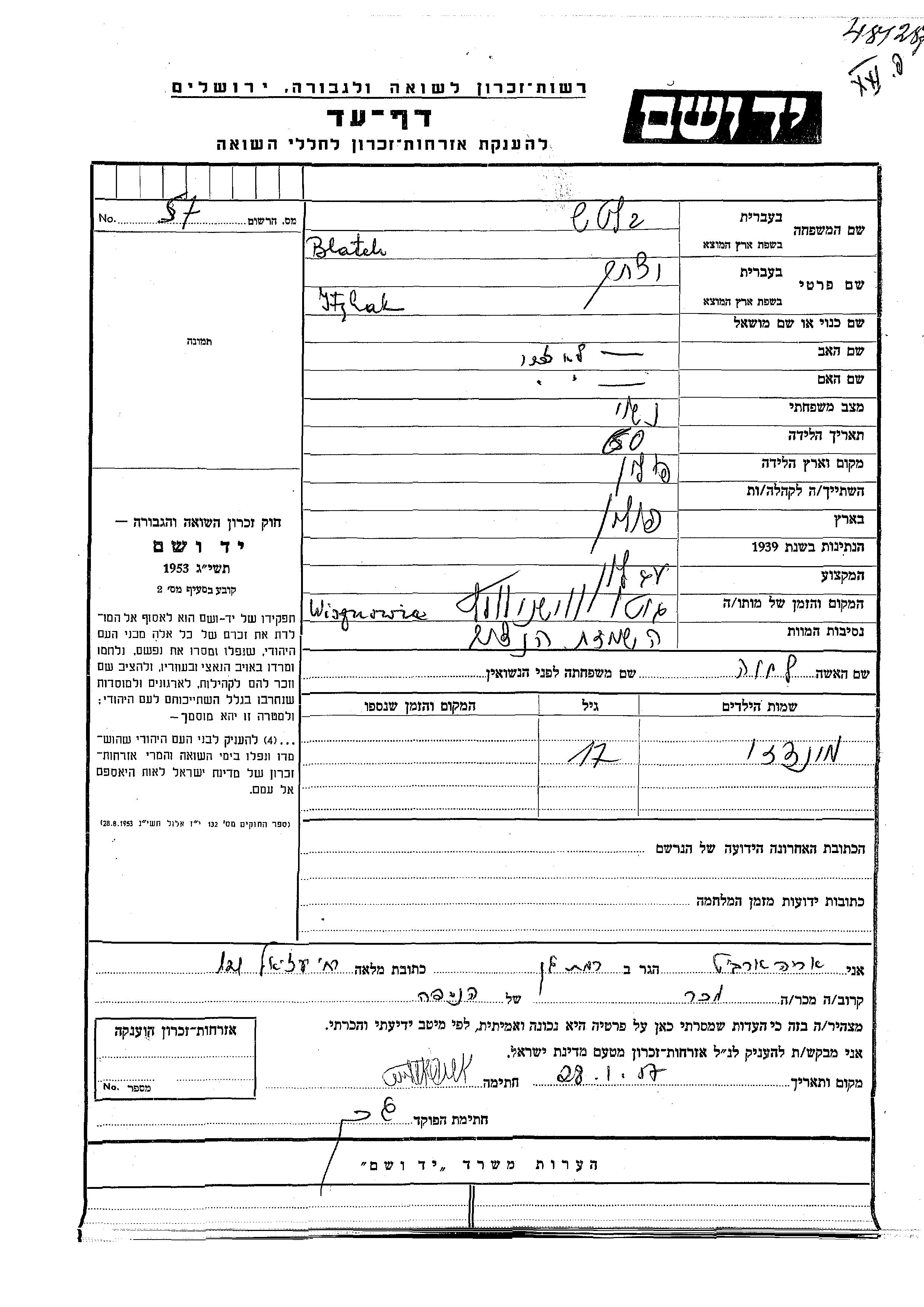Mundzi Blatch Blatz wurde Er/sie war der/ die Sohn/Tochter von Itzhak und Lea. Er/Sie war Kind. Vor dem Zweiten Weltkrieg er/sie in Polen.