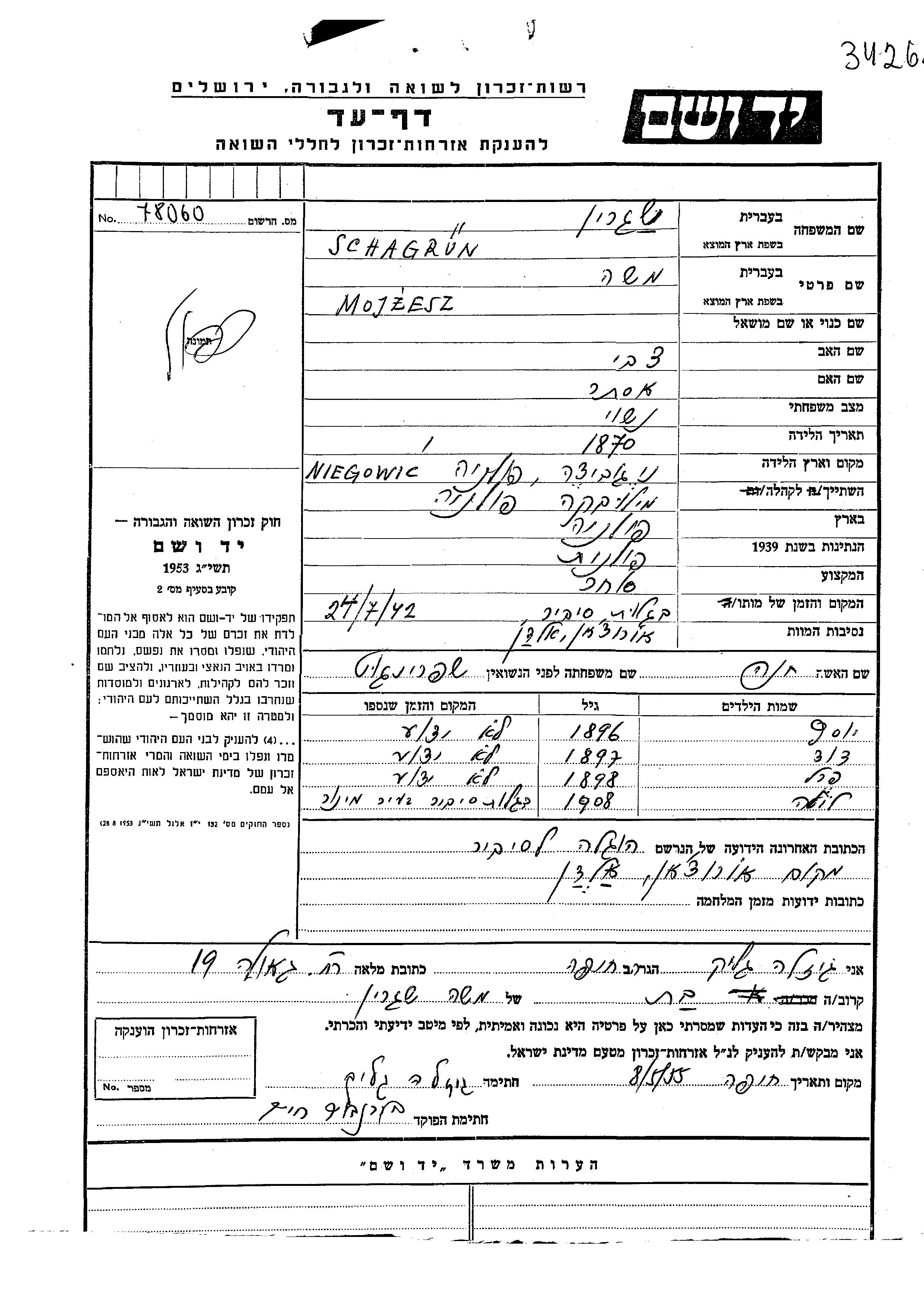Yad Vashem - Gedenkblätter Sammlung