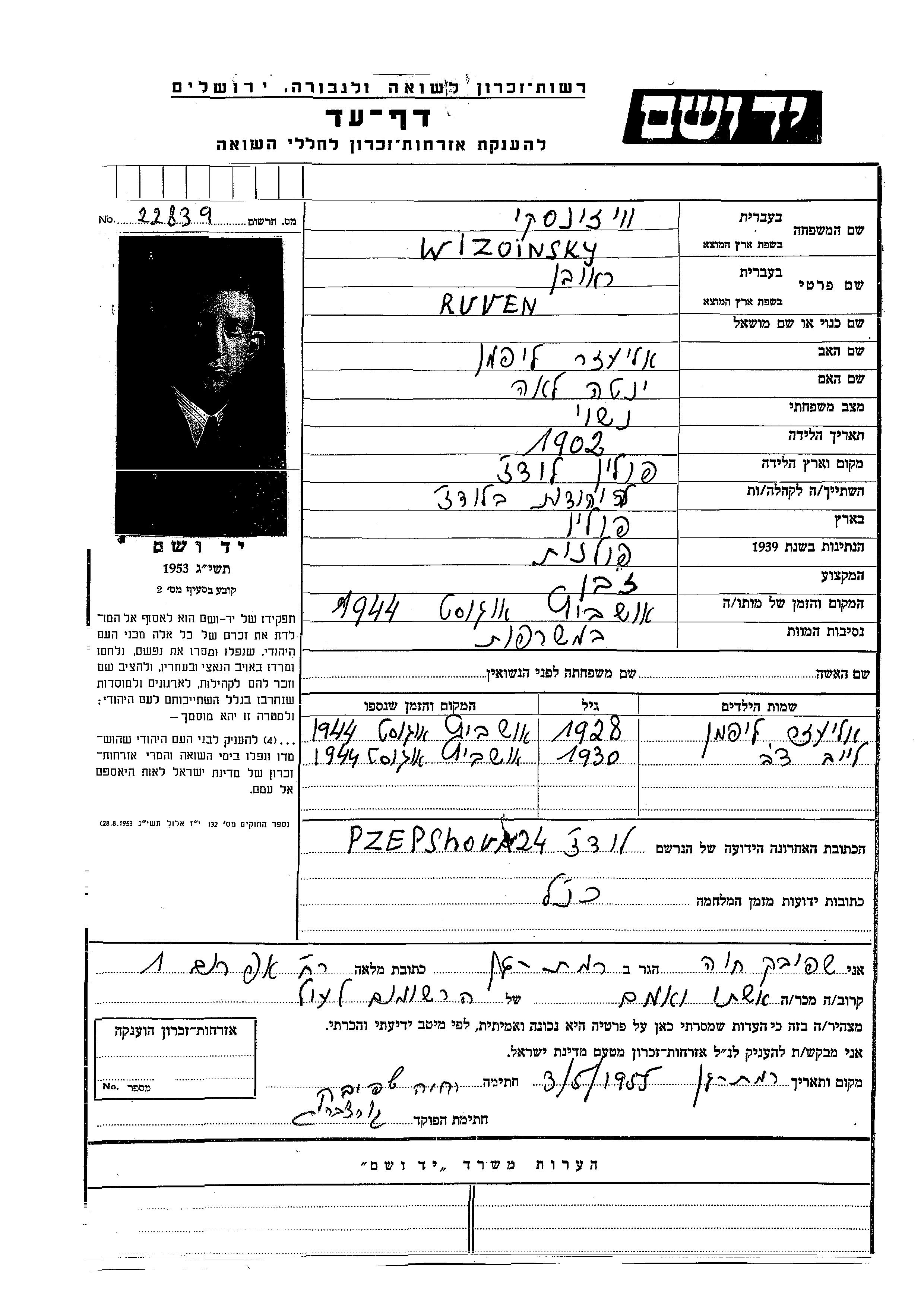Suche nach einem Todesjahr im Zeitraum der Holocaust: 1933 bis 1945. Bitte wählen Sie 'Exakt' im Auswahlmenü, um nur nach einem einzelnen Jahr zu suchen, alternativ können Sie die flexibleren Optionen '+/- 2 Jahre' oder '+/- 5 Jahre' wählen.