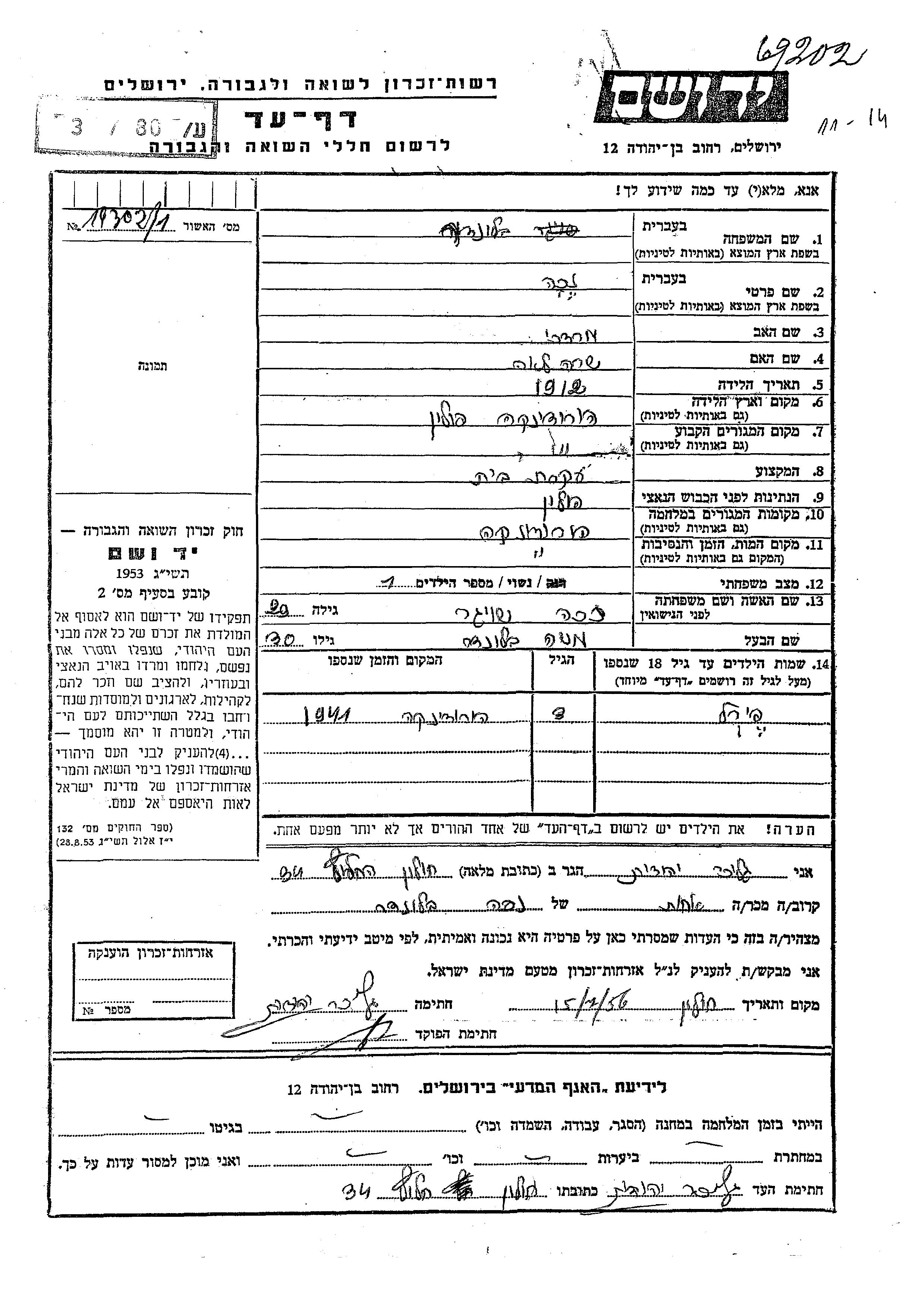 Perel Blonder wurde Sie war die Tochter von Moshe und Nekha, geb. Shveiger. Sie war Kind. Während des Krieges war sie in Horodenka, Polen.