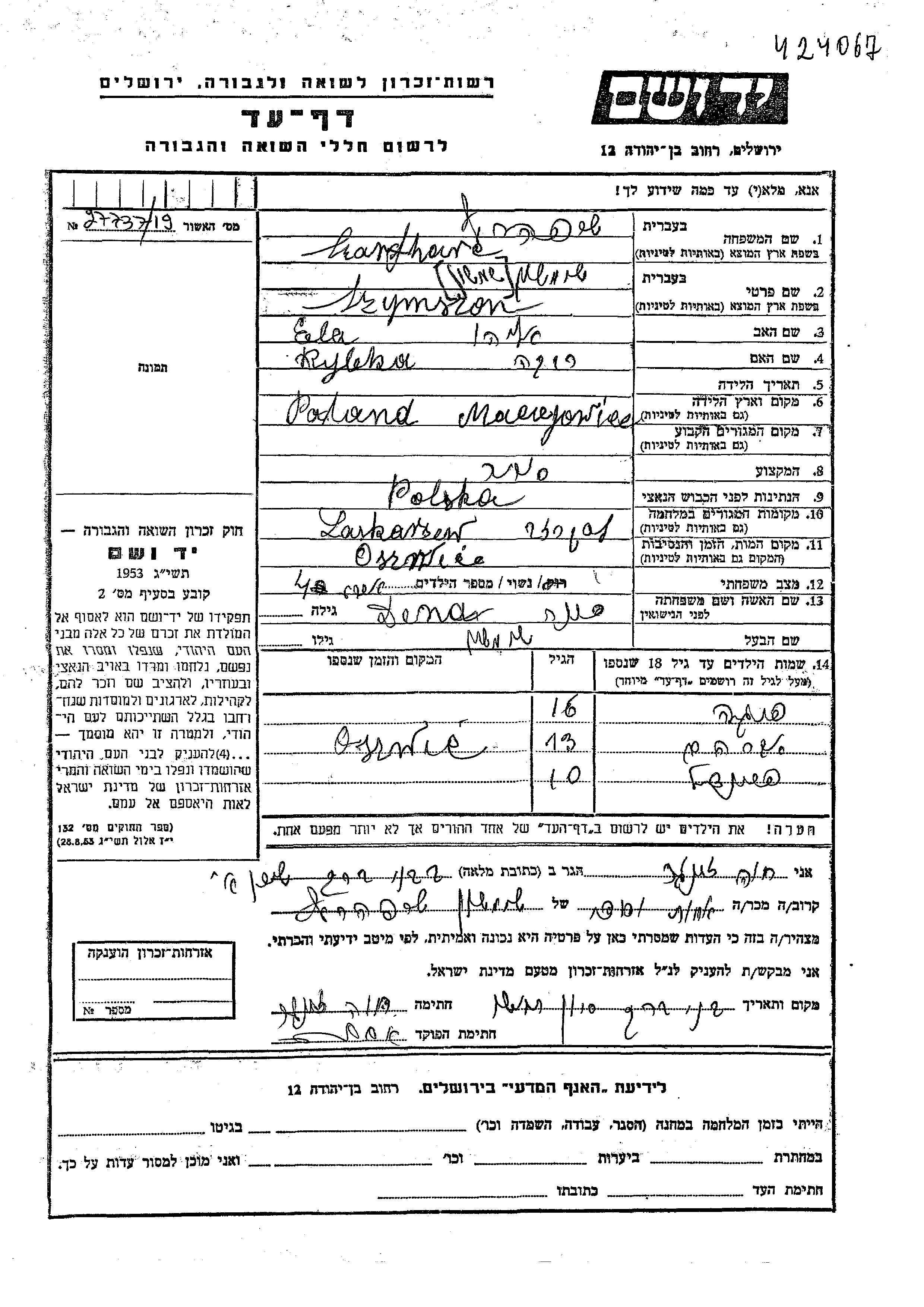 Feiga Szarfharc wurde Sie war die Tochter von Szymszon und Dina. Sie war Kind. Während des Krieges war sie in Laskarzew, Polen.