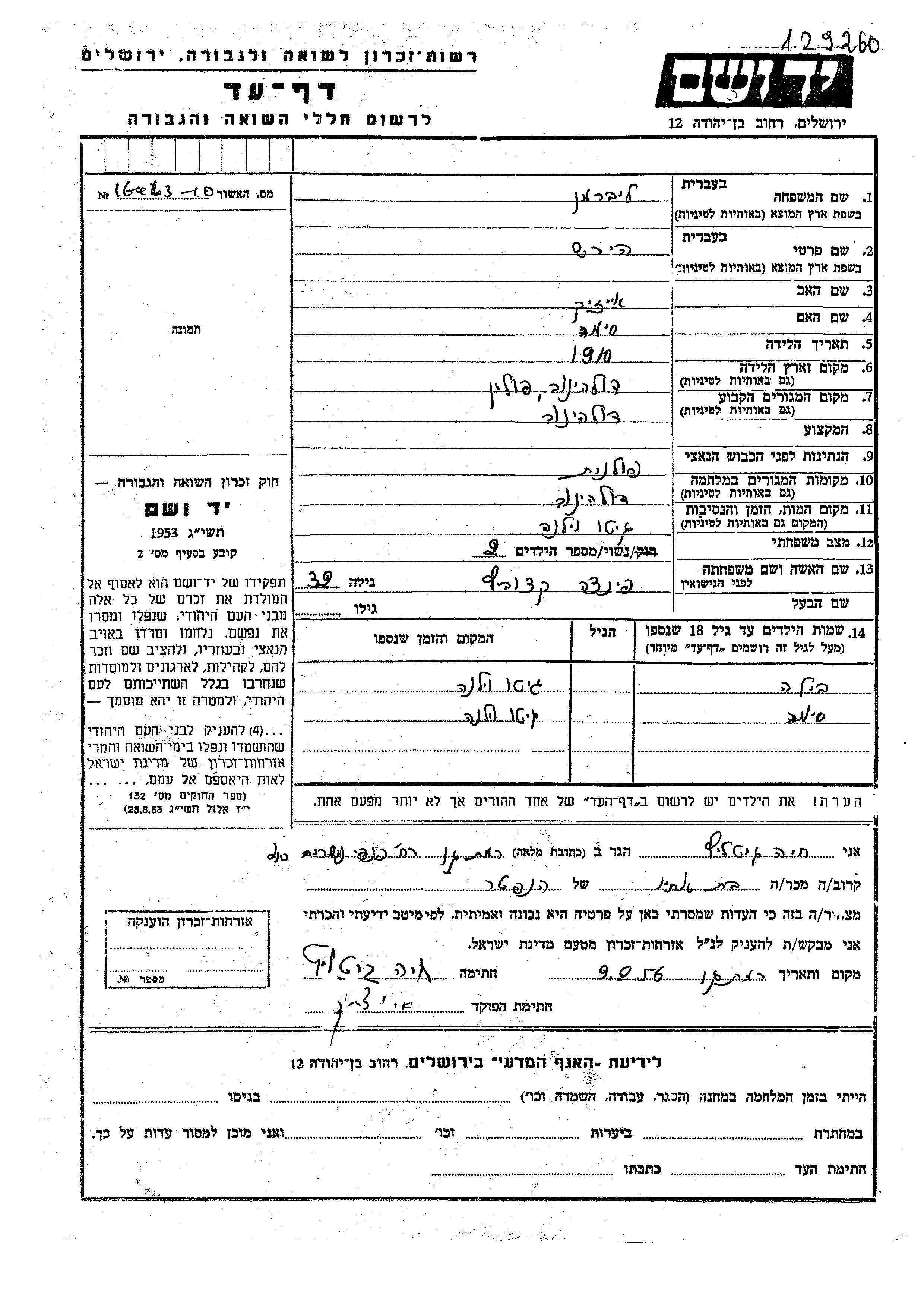 Liberman Sima Dolhinow, Polen Gedenkblatt