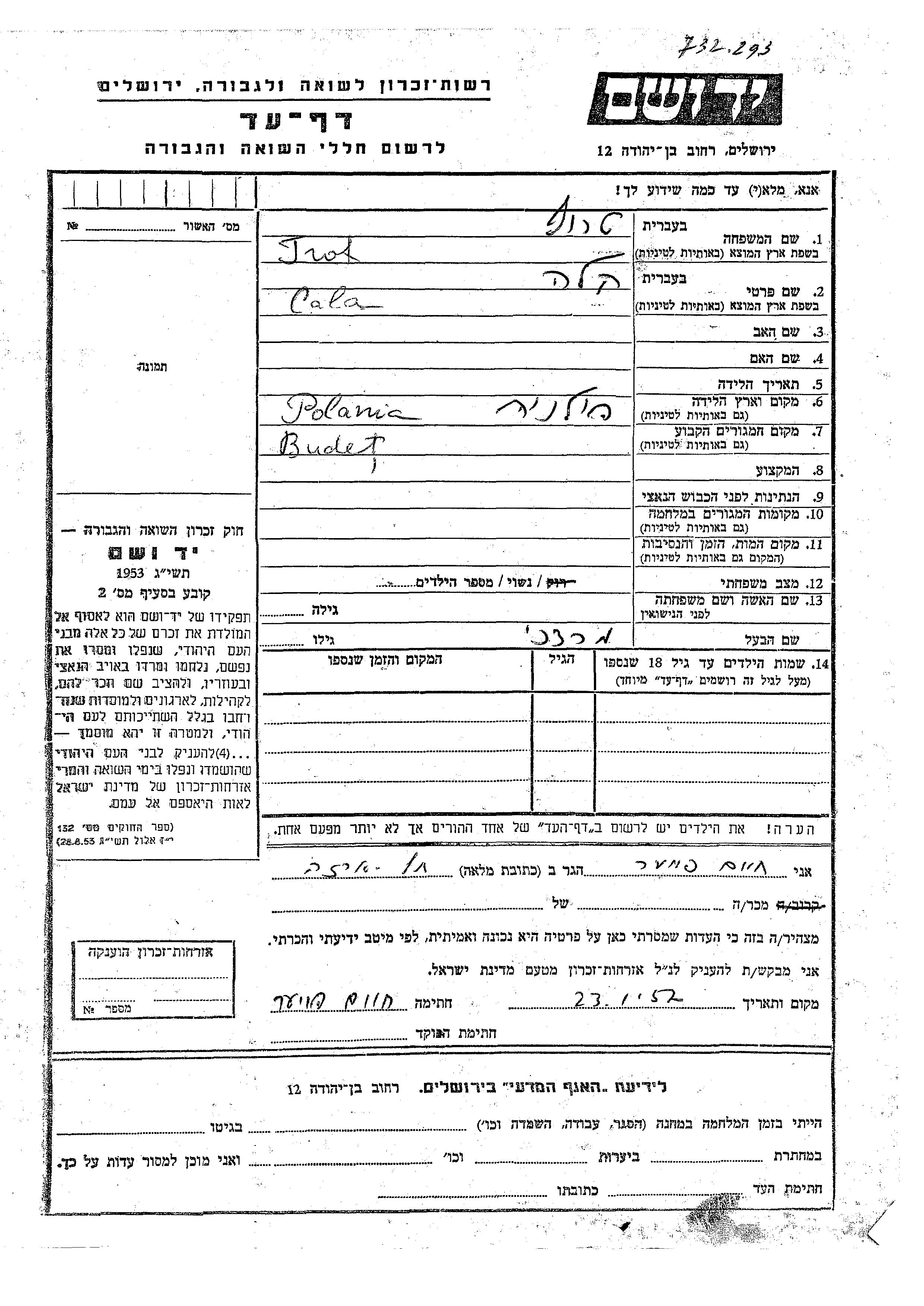 Cala Kela Trof wurde in Polen geboren. Er war mit Mordekhai Verheiratet. Vor dem Zweiten Weltkrieg lebte er in Buczacz, Polen.