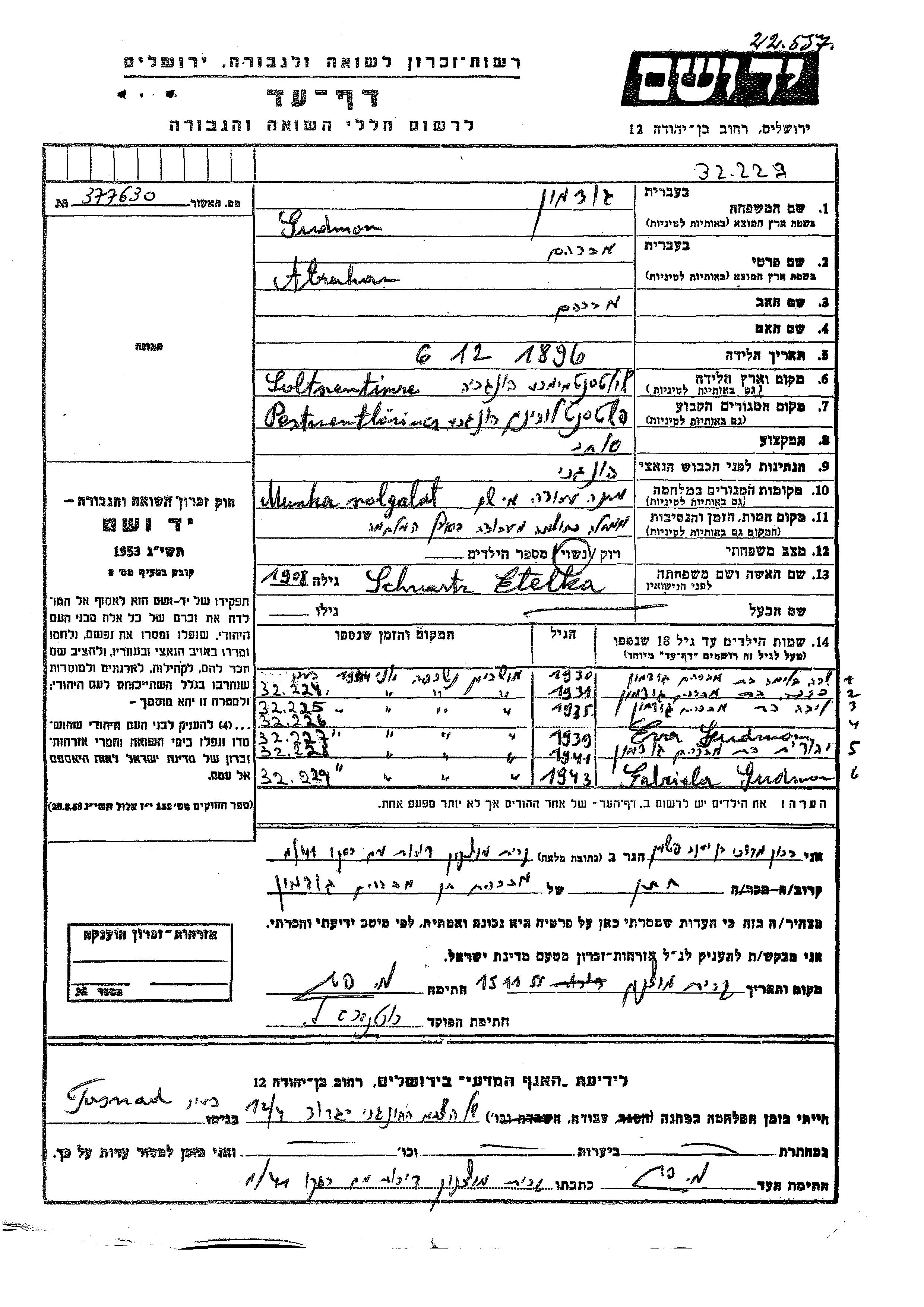 Gudmon Gotman Sara Blima 1930 Pestszentlorinc, Ungarn Gedenkblatt