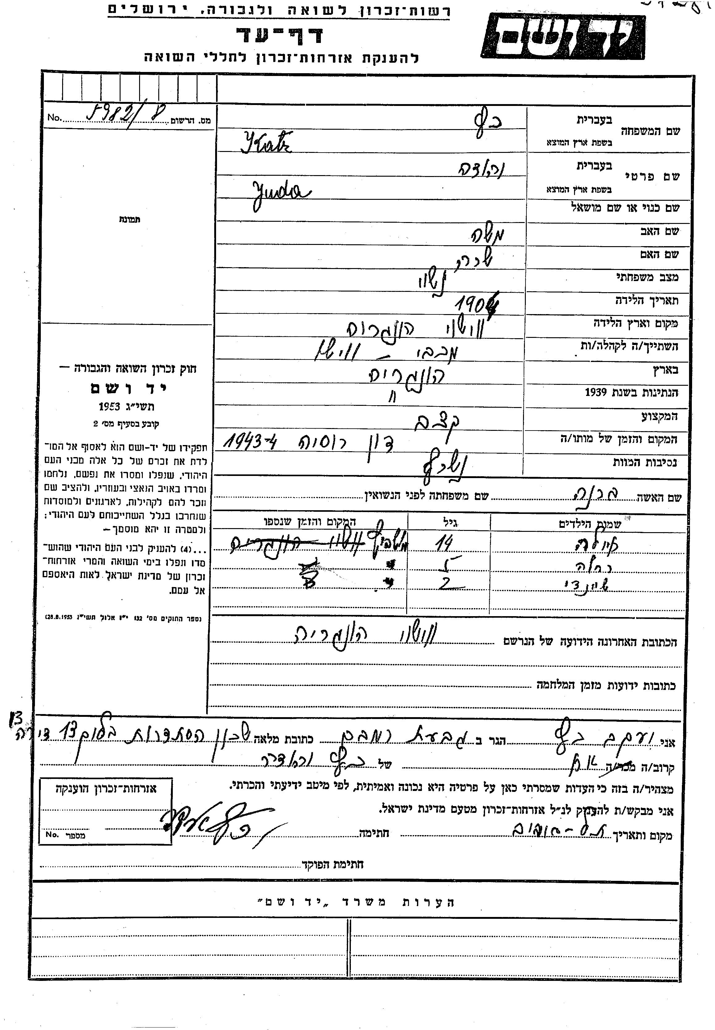 Yad Vashem - Gedenkblätter Sammlung