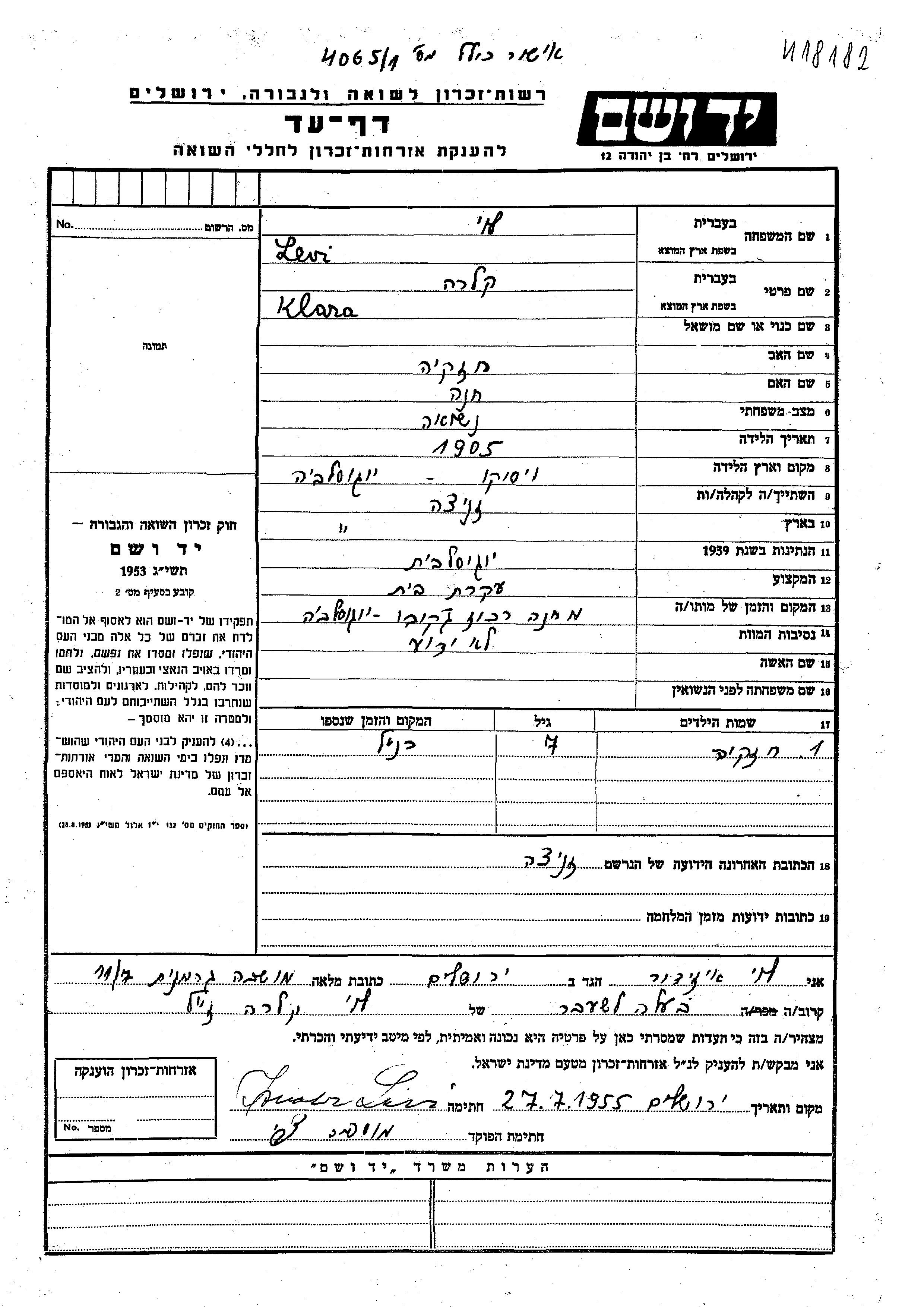 Suche nach einem Todesjahr im Zeitraum der Holocaust: 1933 bis 1945. Bitte wählen Sie 'Exakt' im Auswahlmenü, um nur nach einem einzelnen Jahr zu suchen, alternativ können Sie die flexibleren Optionen '+/- 2 Jahre' oder '+/- 5 Jahre' wählen.