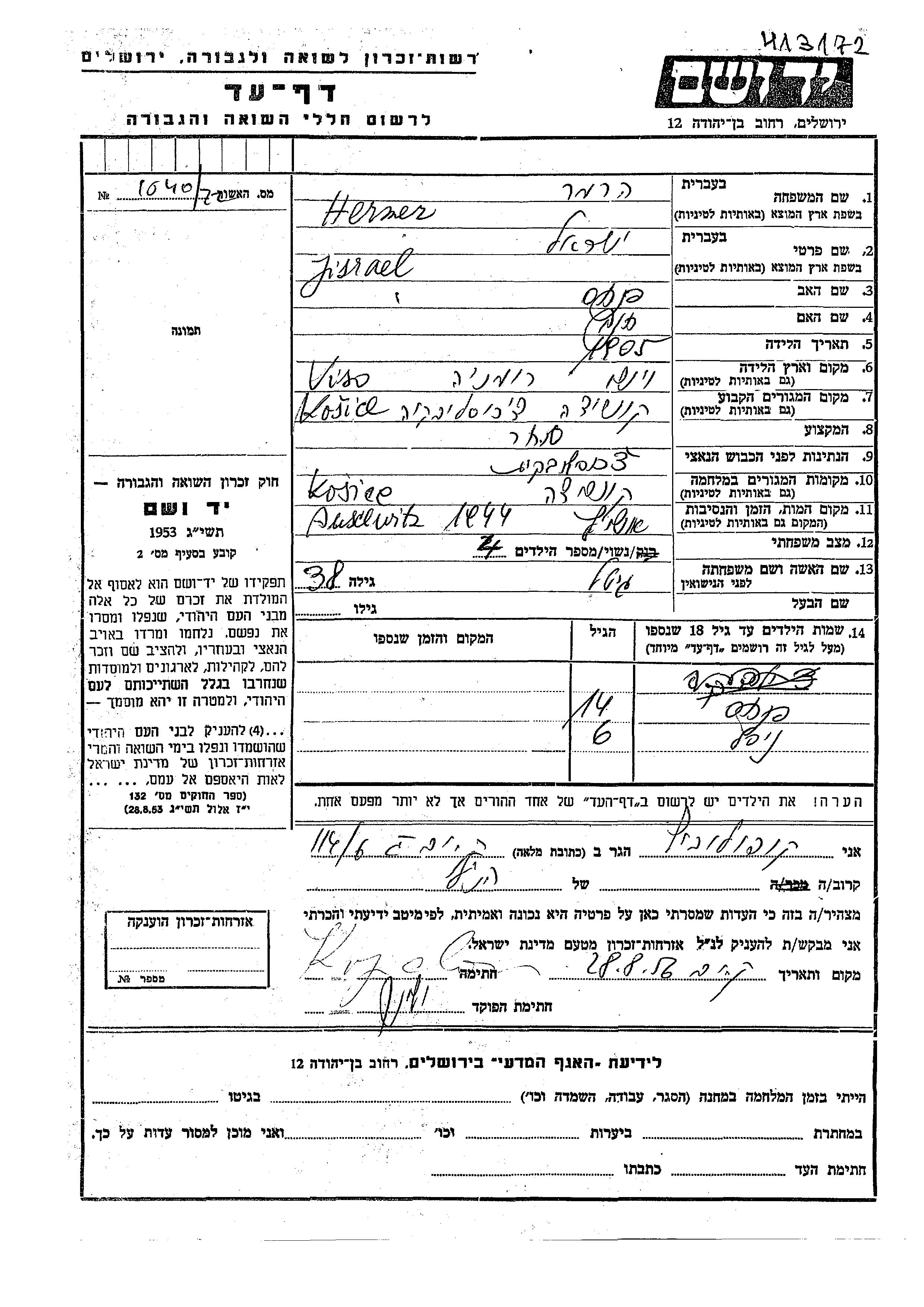 Nisel Hermer wurde Er/sie war der/ die Sohn/Tochter von Israel und Gitel. Er/Sie war Kind. Vor dem Zweiten Weltkrieg er/sie in Kosice, Tschechoslowakei. Während des Krieges war er/sie in Kosice, Tschechoslowakei.