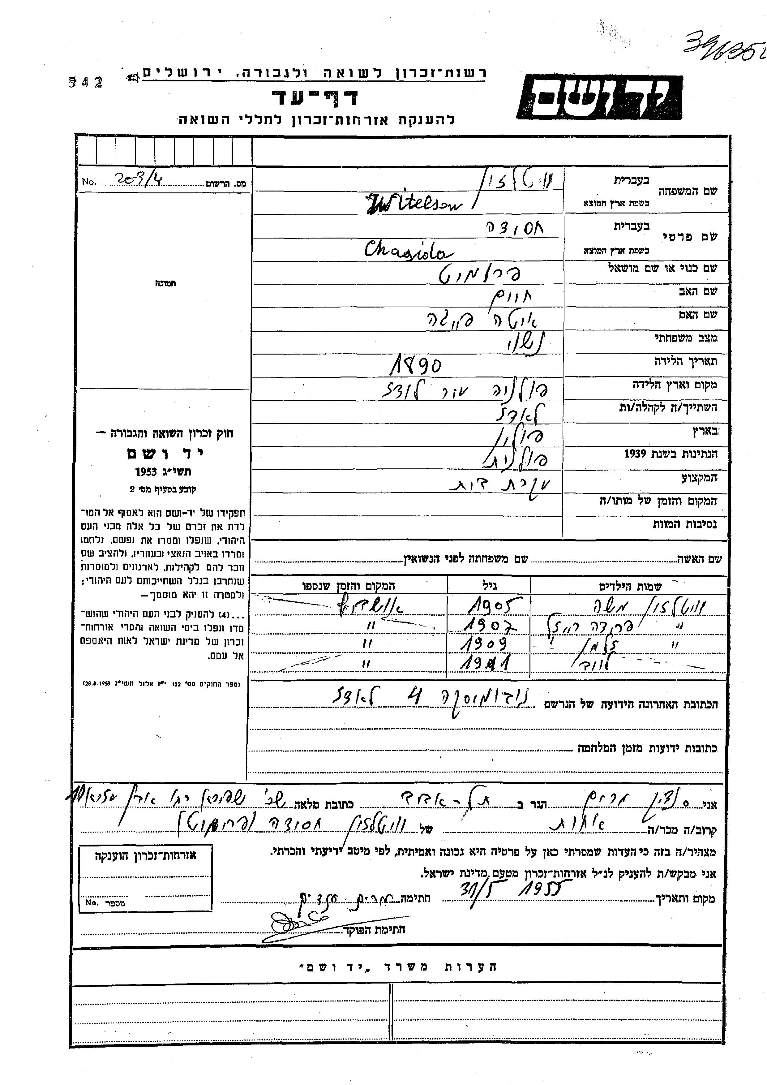 Zalman wurde in der Schoah ermordet.