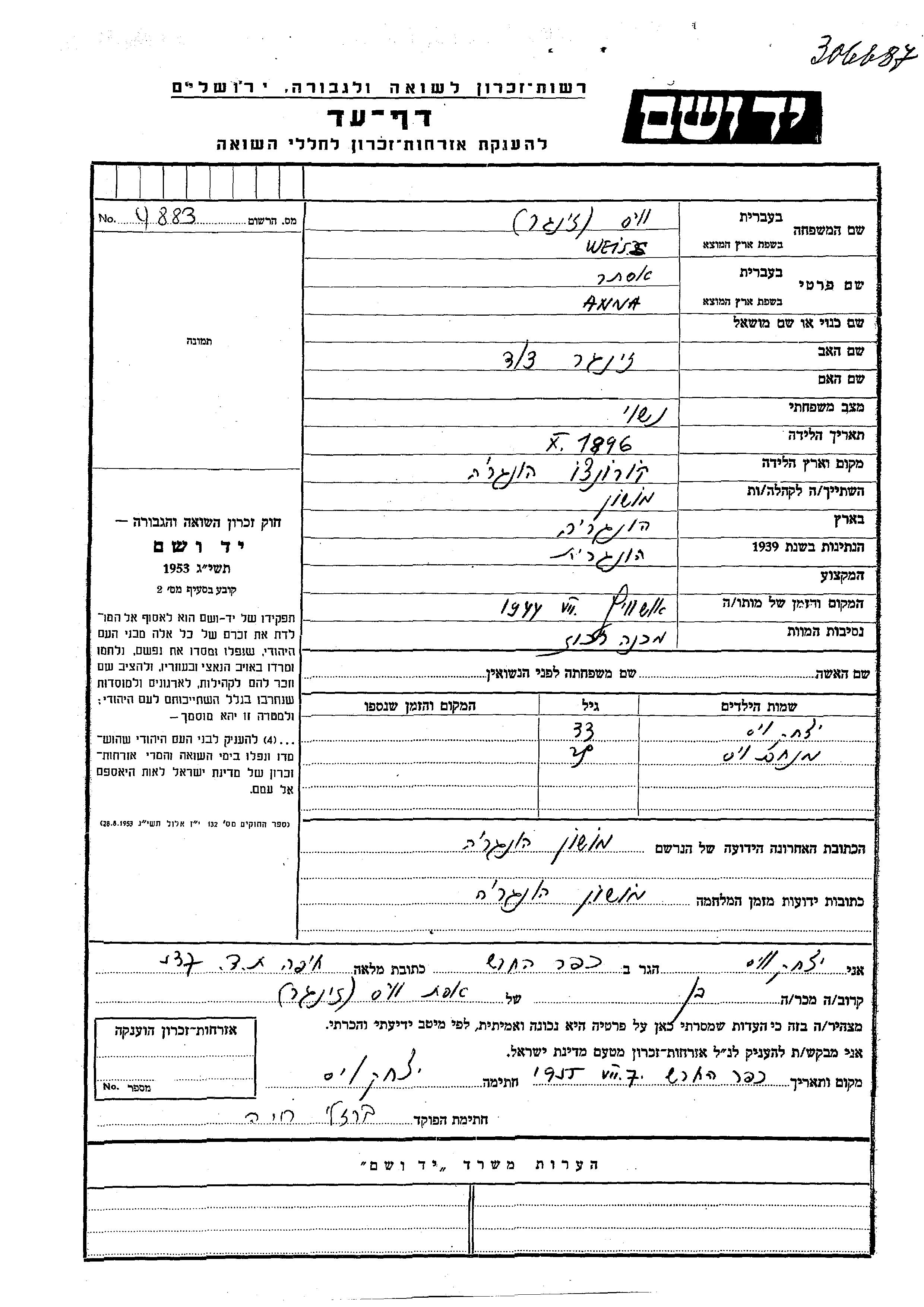 Menakhem Weiss wurde Er war der Sohn von Anna Ester, geb. Zinger. Vor dem Zweiten Weltkrieg lebte er in Moson, Ungarn. Während des Krieges war er in Moson, Ungarn.