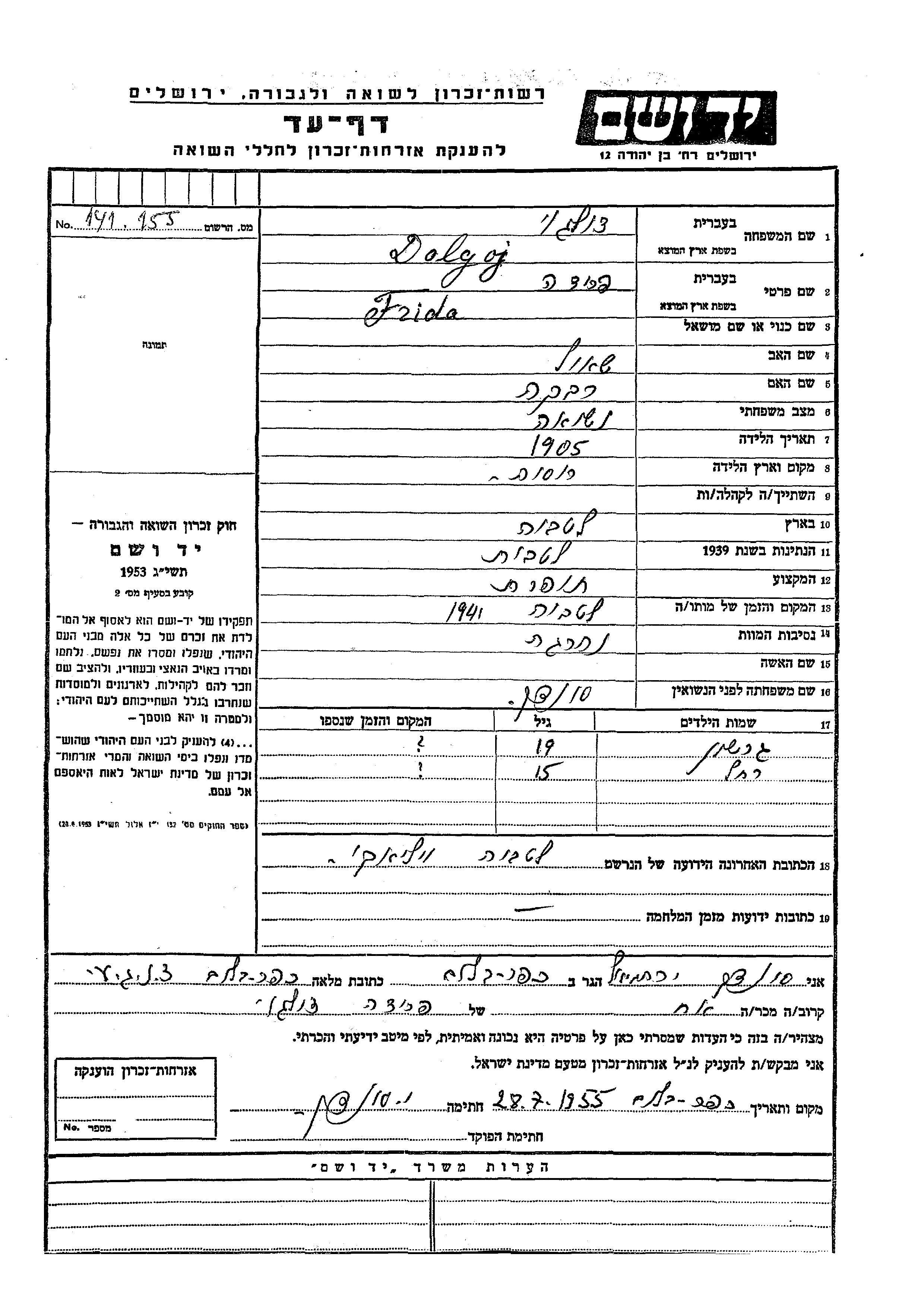 Rakhel Dolgoj wurde Sie war die Tochter von Frida, geb. Sondak. Sie war Kind. Vor dem Zweiten Weltkrieg lebte sie in Lettland.