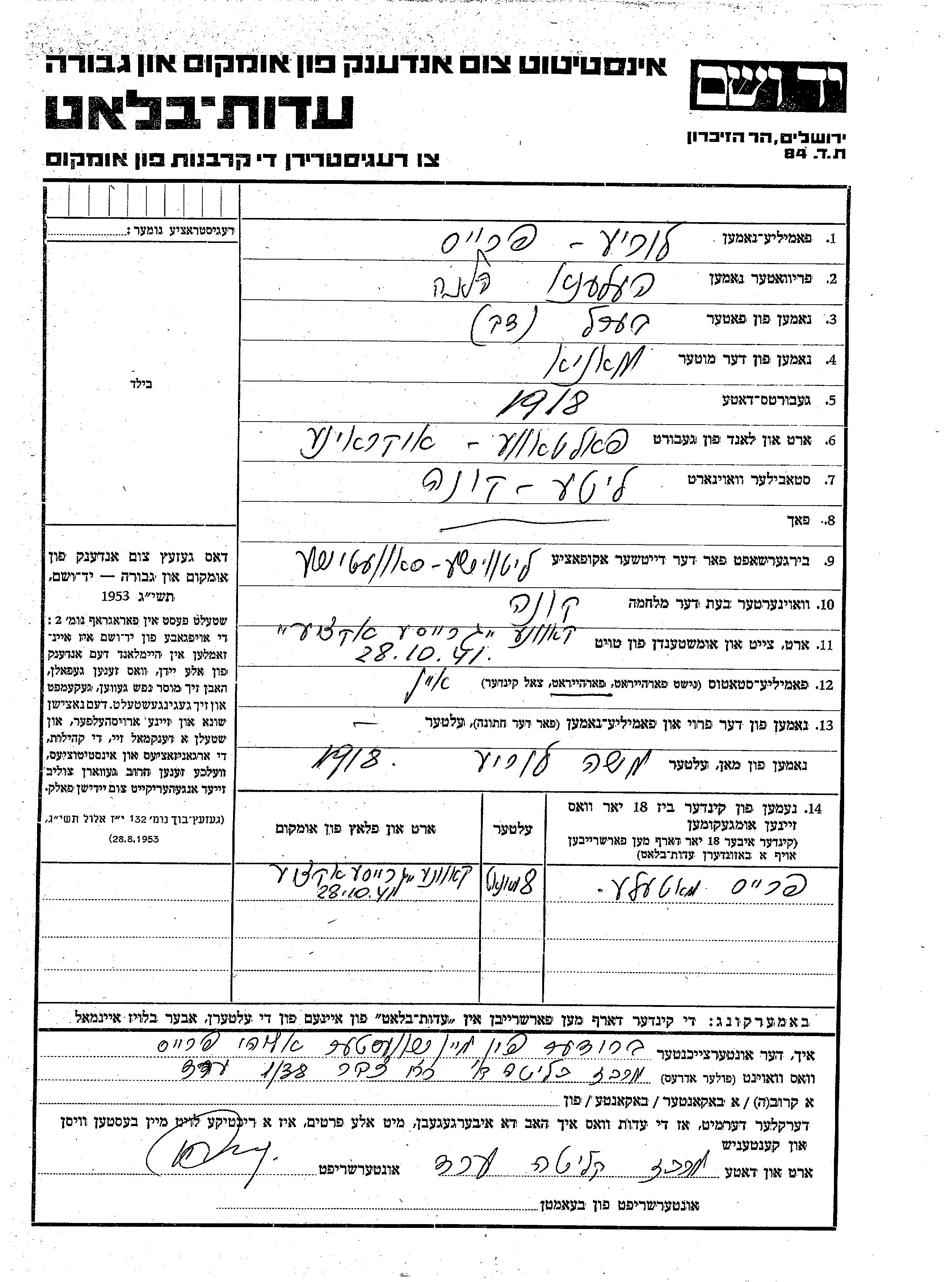 Lurie Motele Kowna, Litauen Gedenkblatt