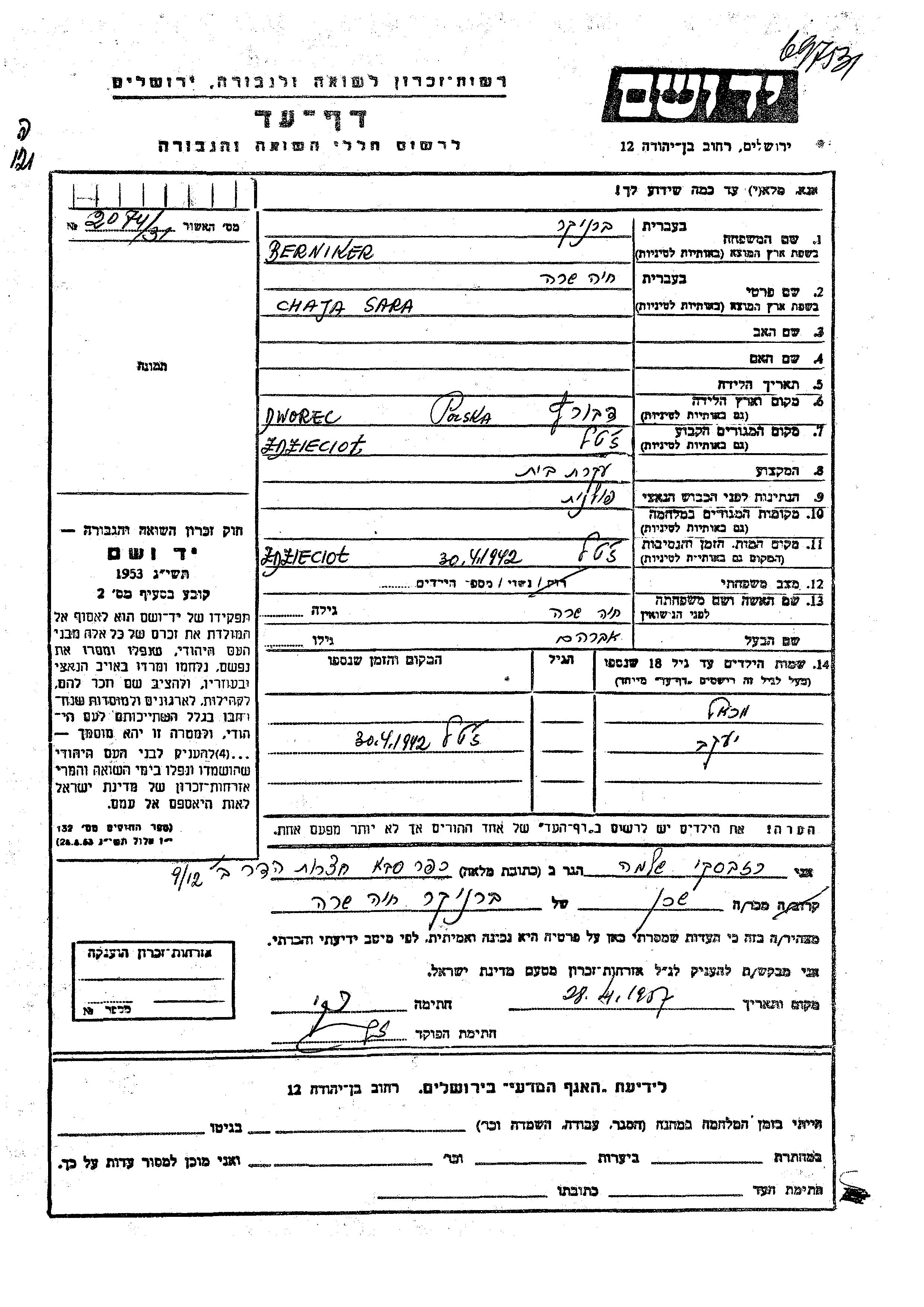 Mekhael Berniker wurde Er/sie war der/ die Sohn/Tochter von Avraham und Chaya Sara, geb. Avraham. Er/Sie war Kind. Vor dem Zweiten Weltkrieg er/sie in Zdzienciol, Polen.