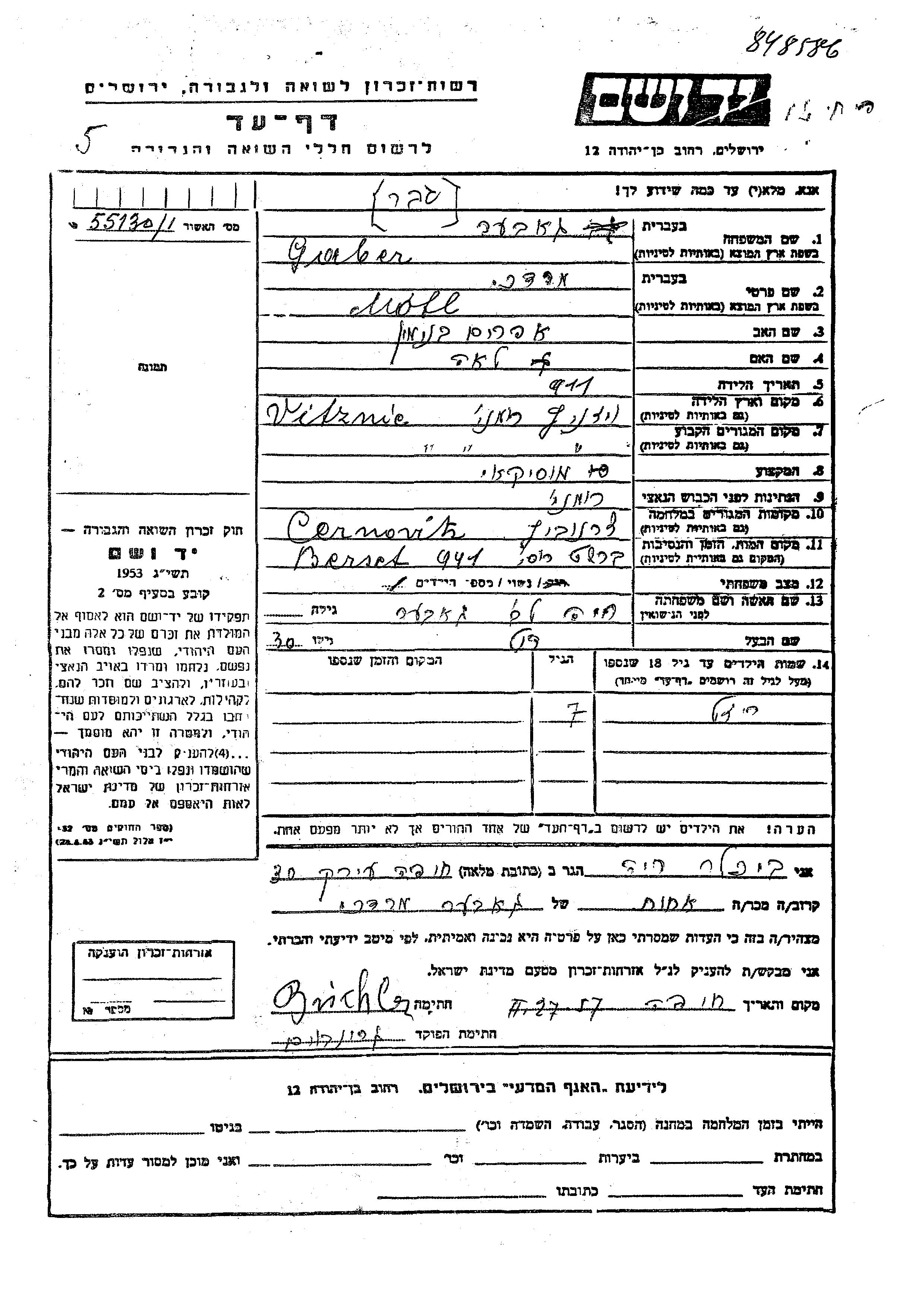 Reizel Gaber Geber wurde Sie war die Tochter von Motl und Khaia, geb. Gaber. Sie war Kind. Vor dem Zweiten Weltkrieg lebte sie in Viznits, Rumänien. Während des Krieges war sie in Czernowitz, Rumänien.