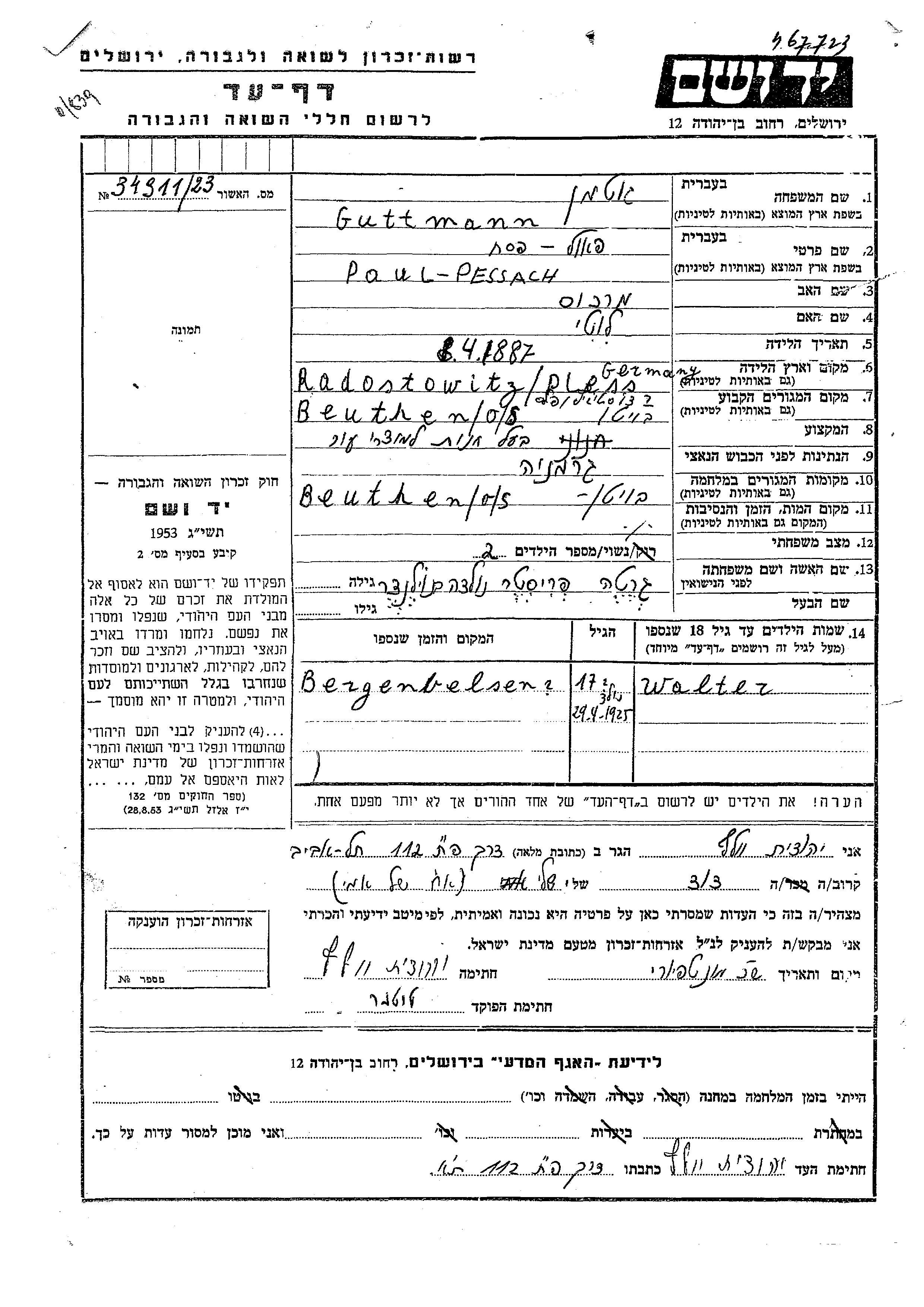 Walter Guttmann wurde im Jahr 1925 geboren. Er war der Sohn von Pessach Paul und Greta, geb. Frister. Er war Kind. Vor dem Zweiten Weltkrieg lebte er in Beuthen, Deutsches Reich. Während des Krieges war er in Beuthen, Deutsches Reich.