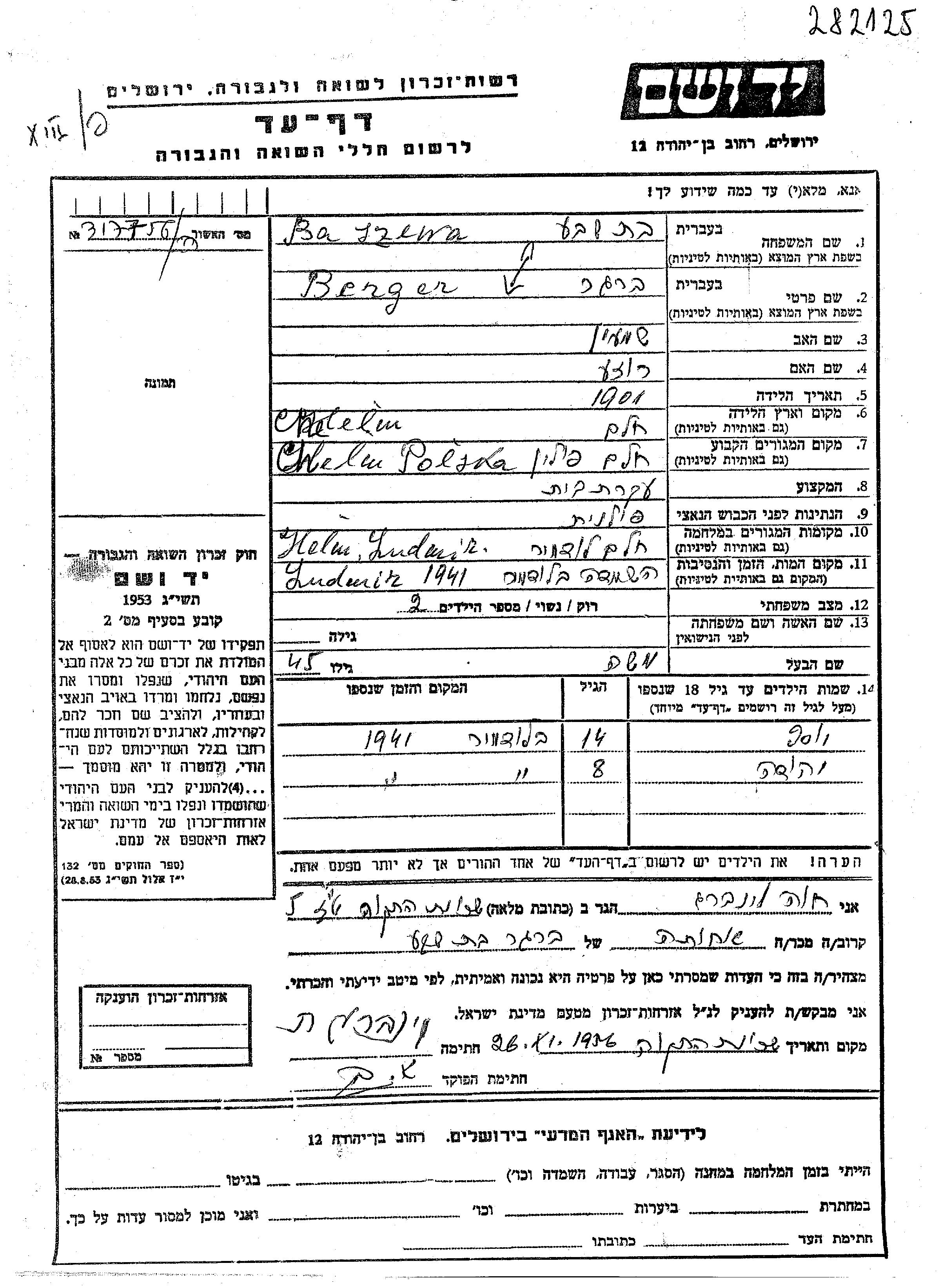Yosef Berger wurde Er war der Sohn von Moshe und Bat Szewa. Er war Kind. Vor dem Zweiten Weltkrieg lebte er in Chelm, Polen. Während des Krieges war er in Chelm, Polen.