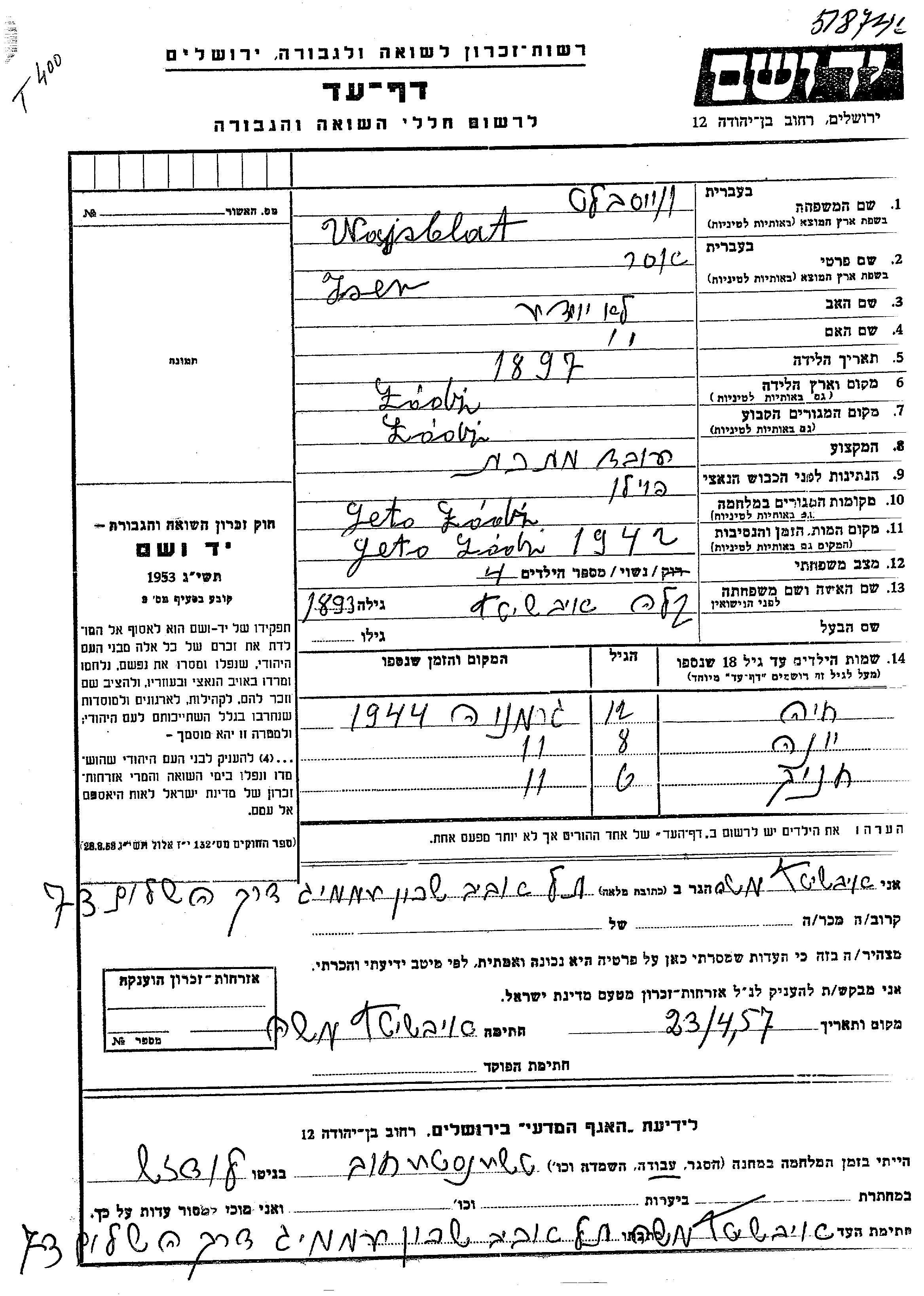 Khanokh Wajsblat wurde Er war der Sohn von Yisrael und Bela, geb. Eibenshitz. Er war Kind. Vor dem Zweiten Weltkrieg lebte er in Lodz, Polen. Während des Krieges war er in Lodz, Polen.