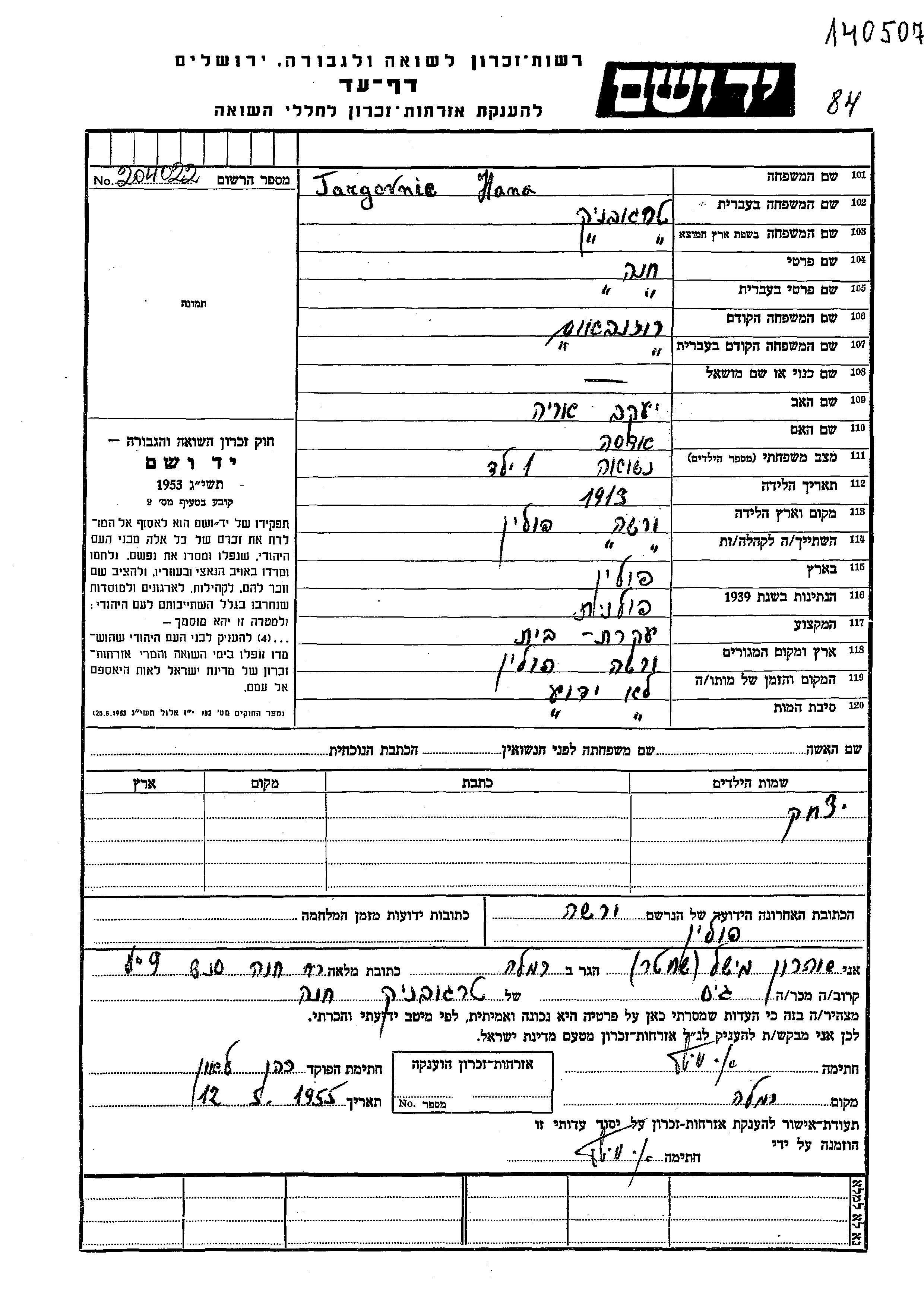 Yitzkhak Targovnic wurde Er war der Sohn von Hana, geb. Rozenbaum. Er war Kind. Vor dem Zweiten Weltkrieg lebte er in Warszawa, Polen.