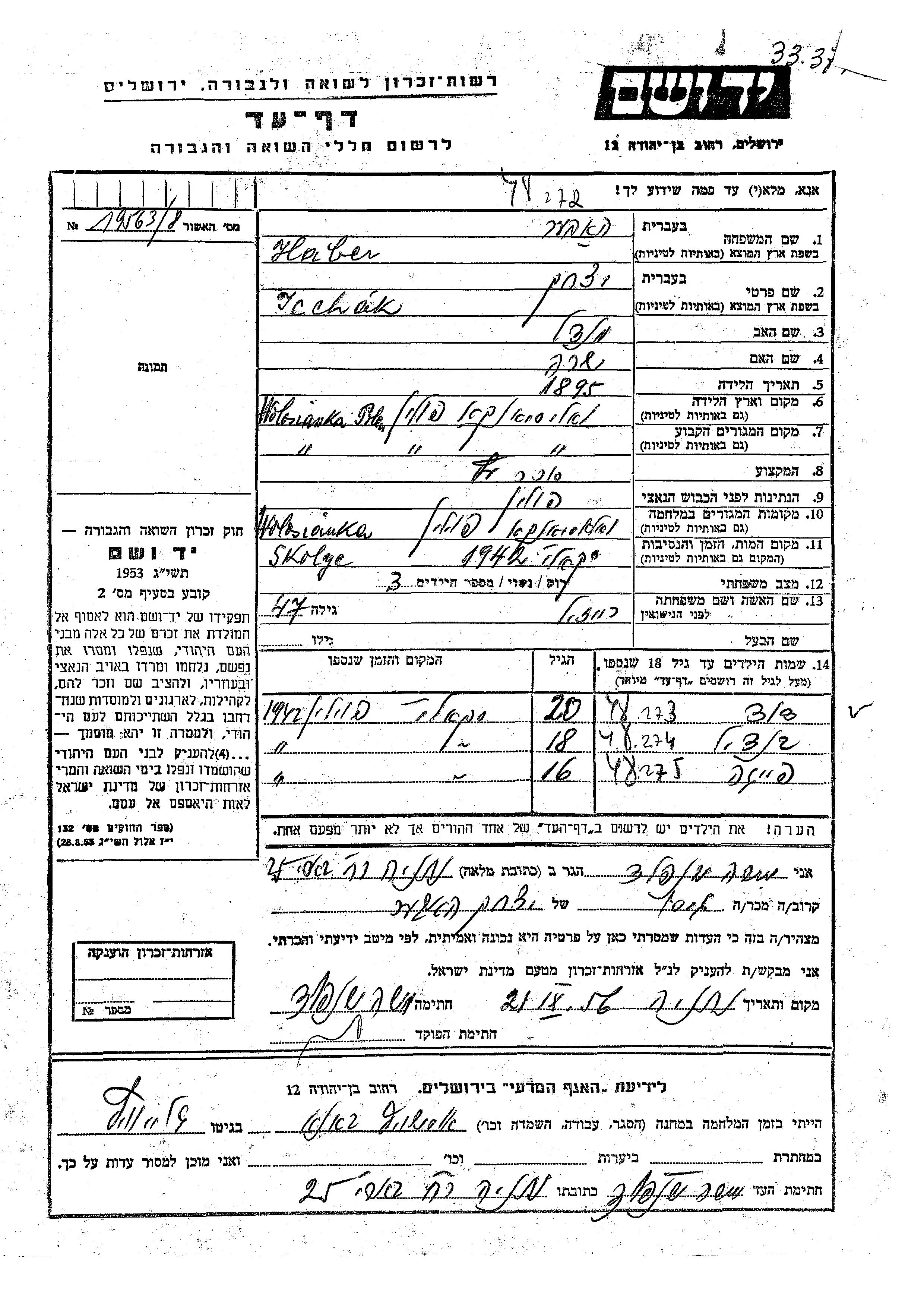 Bendil Haber wurde Er war der Sohn von Icchak und Reizil. Er war Kind. Vor dem Zweiten Weltkrieg lebte er in Wolosianka, Polen. Während des Krieges war er in Wolosianka, Polen.