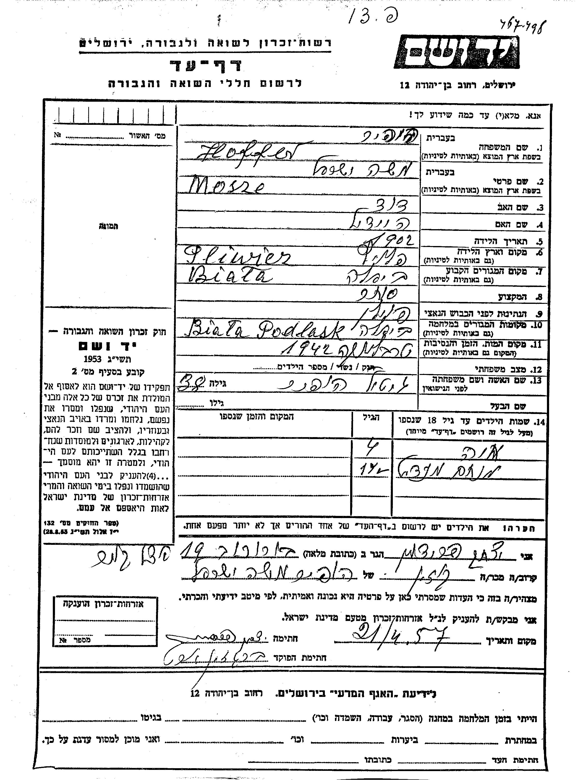 Menakhem Mendel Hoffer wurde Er war der Sohn von Mosze Yisrael und Gitil. Vor dem Zweiten Weltkrieg lebte er in Biala, Polen. Während des Krieges war er in Biala Podlaska, Polen.