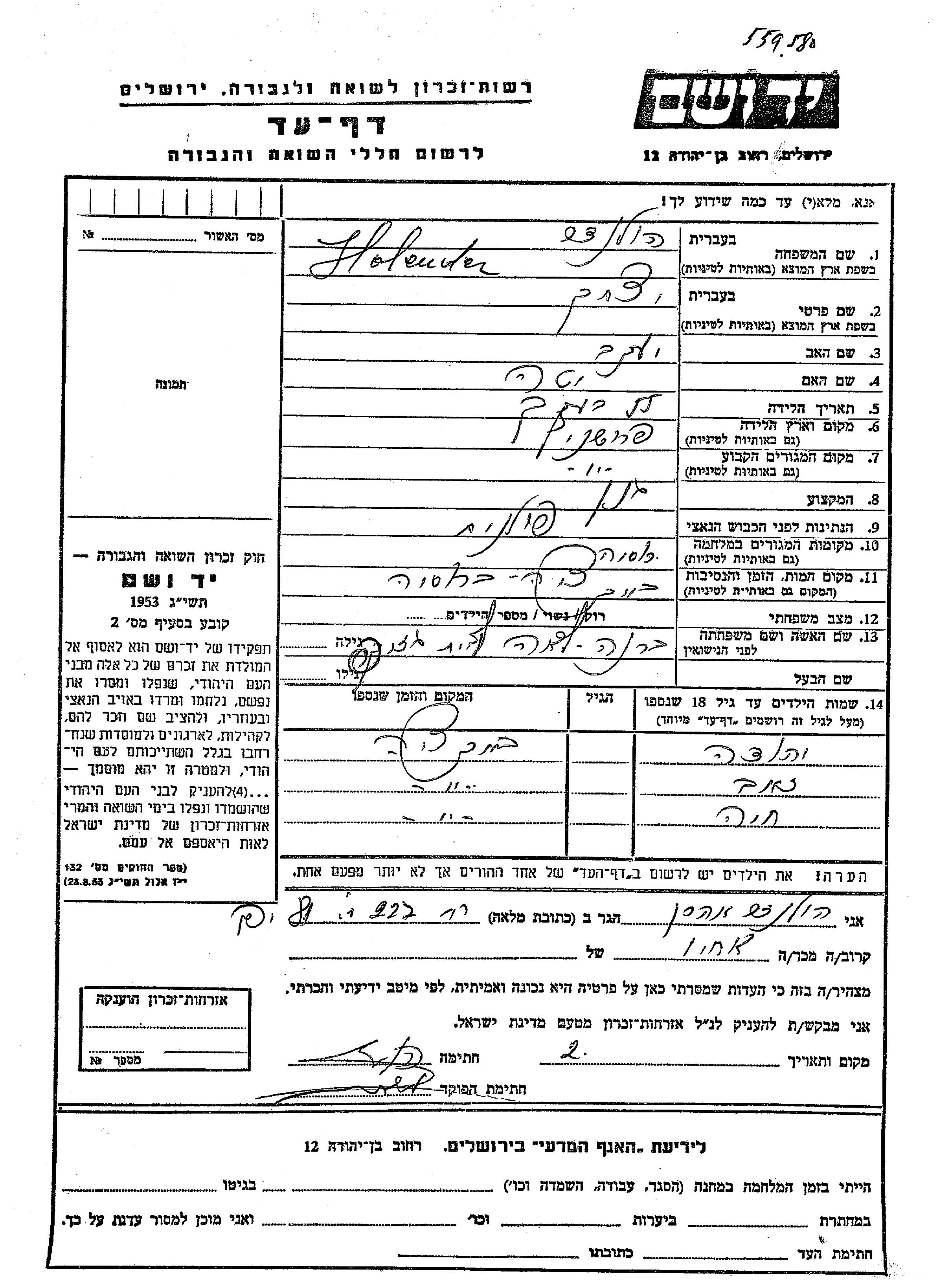 Yehuda Holender wurde Er war der Sohn von Yitzkhak und Brana Lea, geb. Gzhip. Er war Kind. Vor dem Zweiten Weltkrieg lebte er in Prusznic, Polen. Während des Krieges war er in Russland (UdSSR).