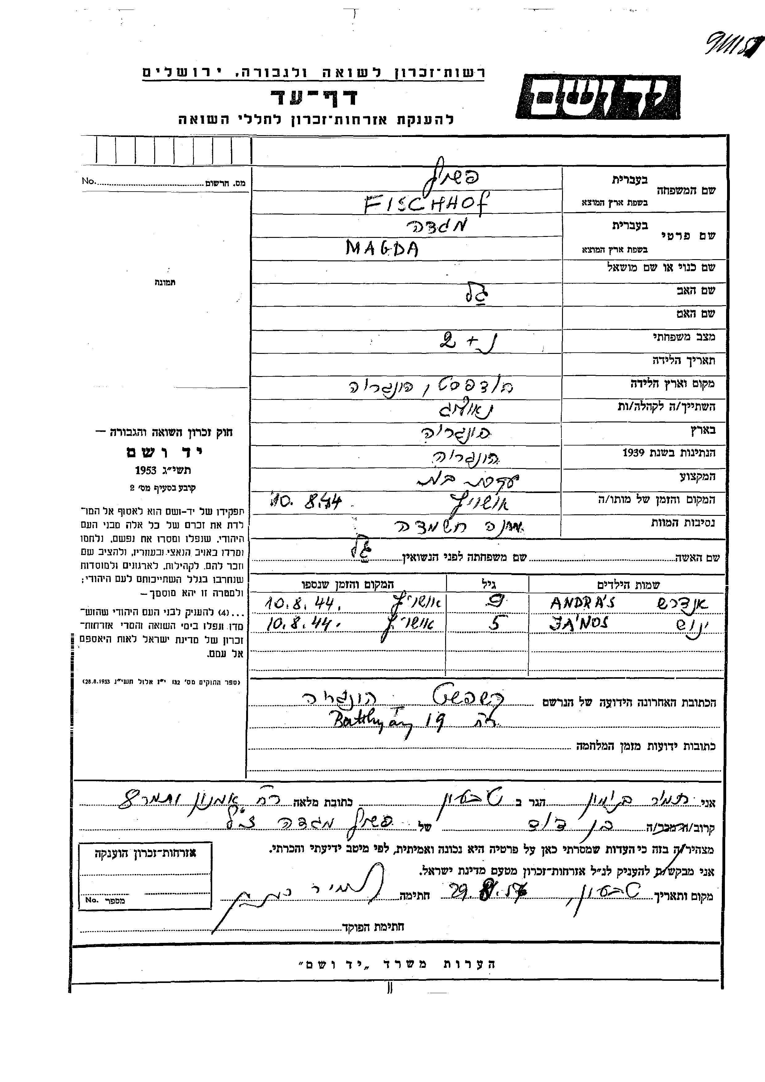 Janos Fischhof wurde Er war der Sohn von Magda, geb. Gal. Er war Kind. Vor dem Zweiten Weltkrieg lebte er in Kispest, Ungarn. Während des Krieges war er in Kispest, Ungarn.