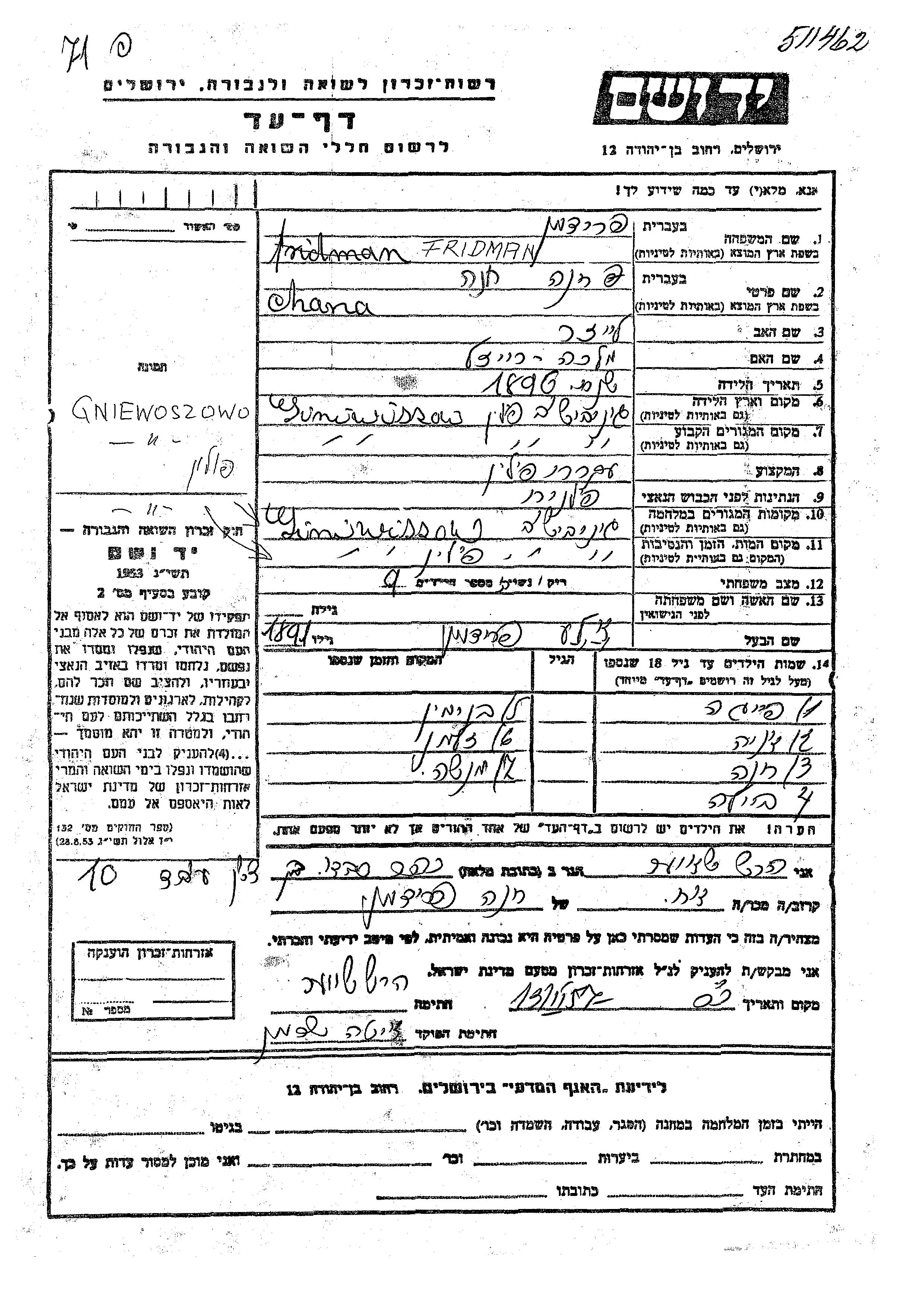 Fridman Ana Ginivishov, Polen Gedenkblatt