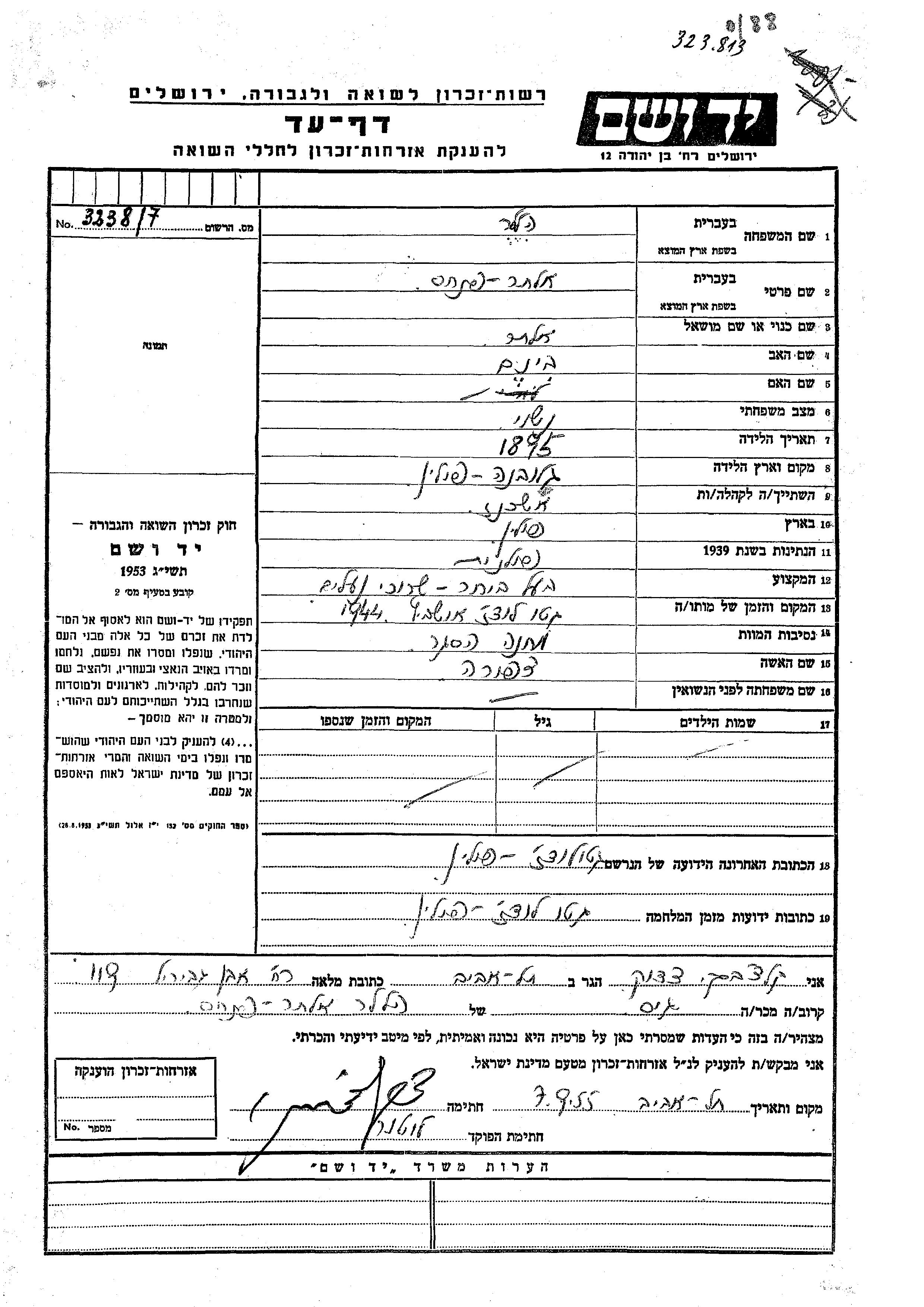 Heler Alter Pinkhas 1895 Lodz, Polen Gedenkblatt